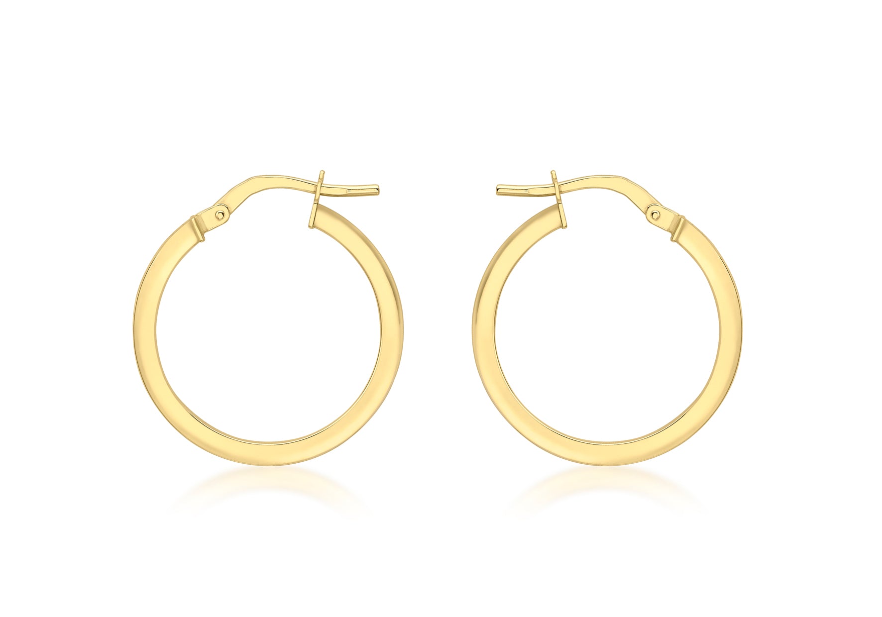 Details: 2mm Square Tube Diameter: 21mm Finish: Polished Fitting: Hinged Post Style: Creole Product Type: Earrings Metal Colour: Yellow Metal: 18ct Gold