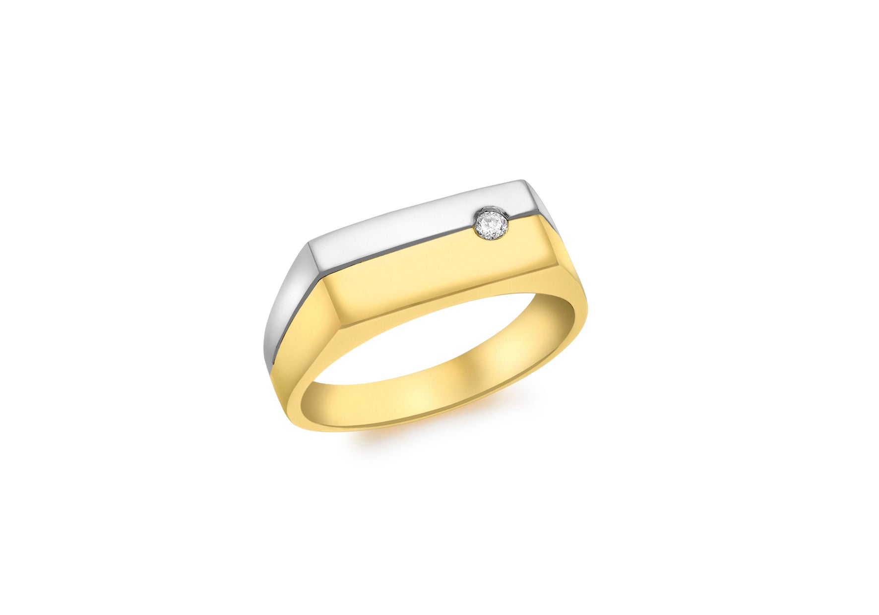 9ct Two-Tone Gold 0.04ct Diamond Flush Set Signet Ring