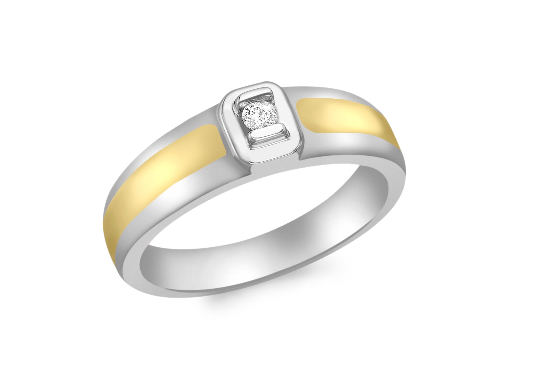 9ct Two-Tone Gold 0.05ct Diamond Men's Ring