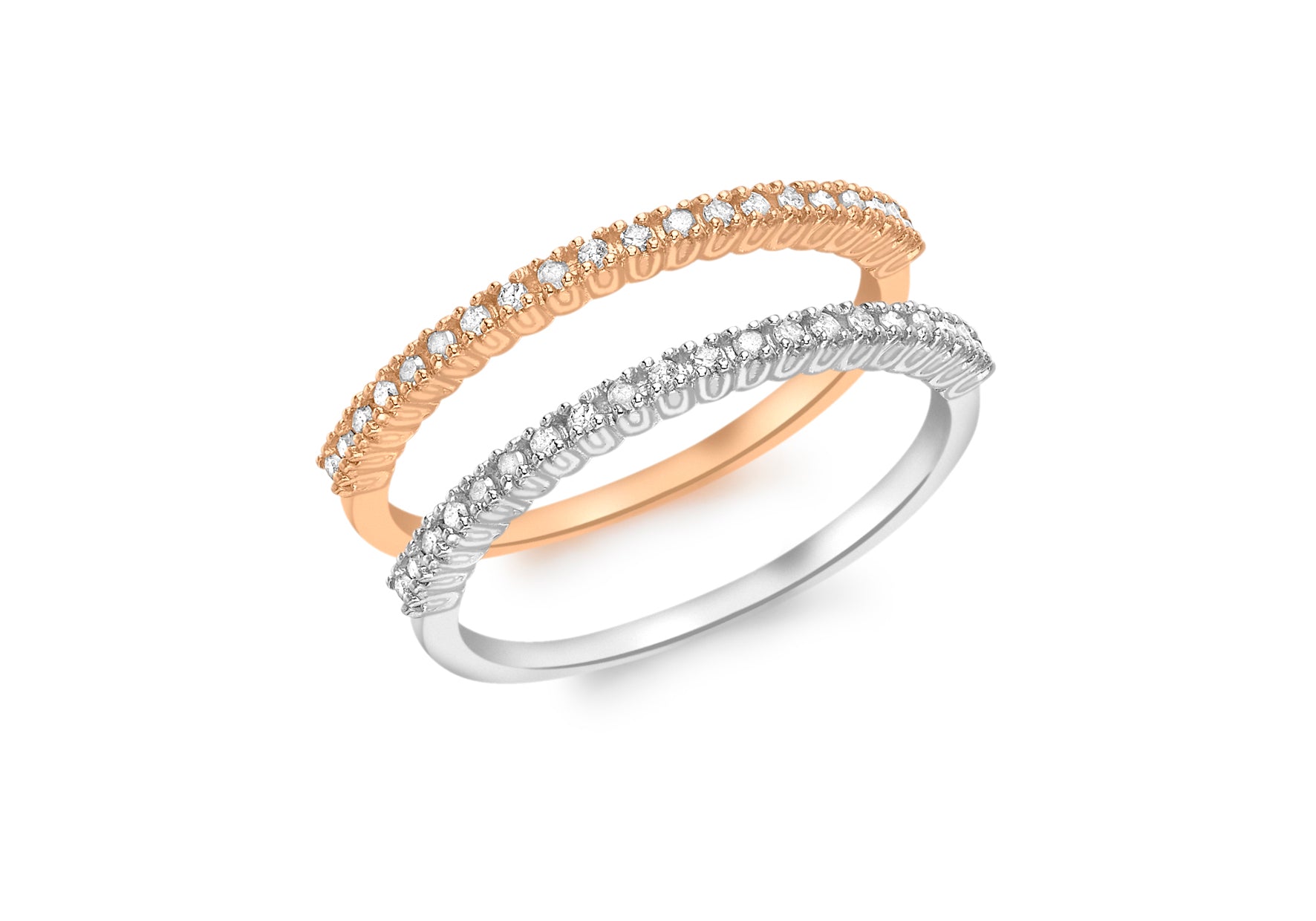 9ct Two-Tone Gold 0.24ct Diamond Half Eternity Stacking Rings