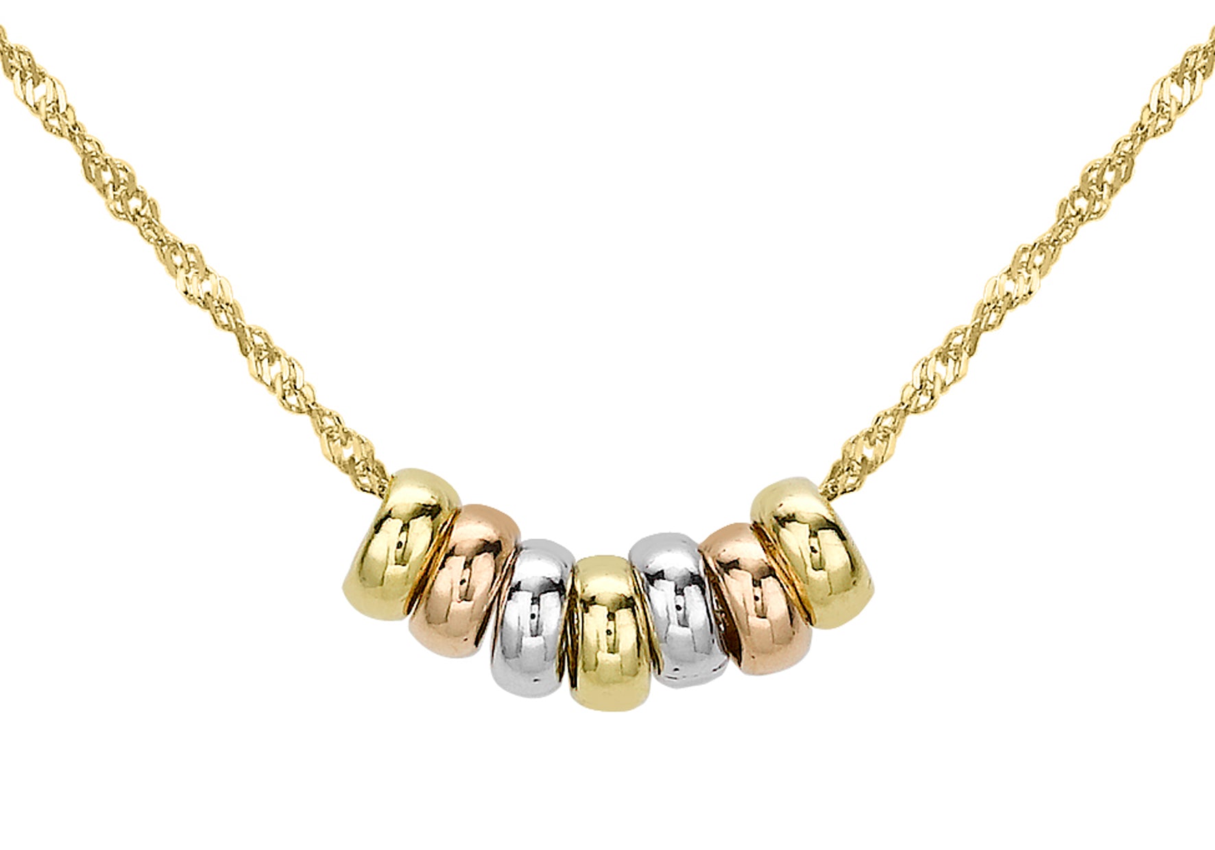 9ct Tri-Colour Gold Mini 7 Lucky Rings Pendant Twist Chain Necklace