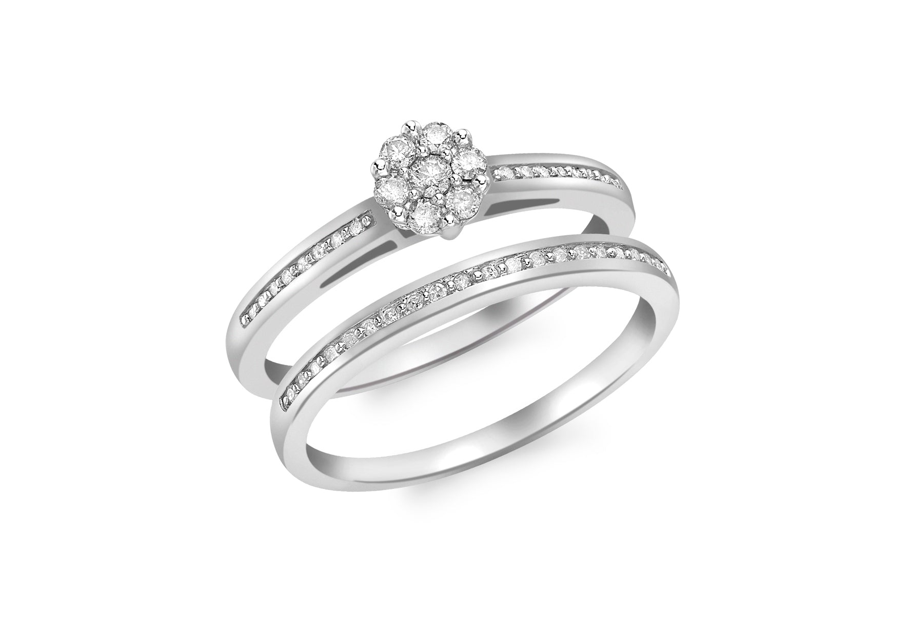 9ct White Gold 0.23ct Diamond Cluster & Band Double Ring Set
