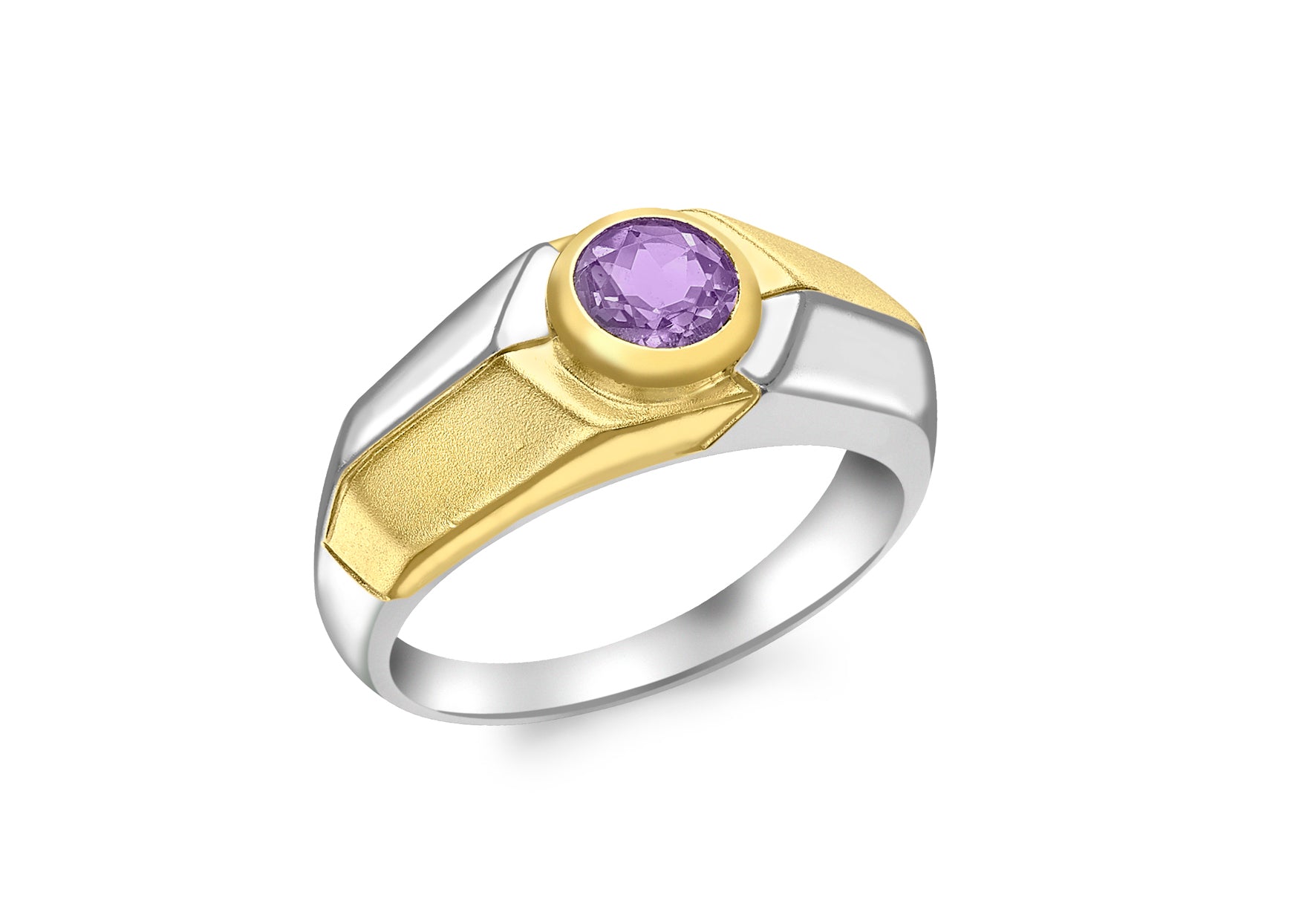 Ring Shank: 2mm Setting: Rubover Stone Details: 5.5mm Diameter Amethyst Style: Stone Set Product Type: Rings Metal Colour: 2 Colour Metal: 9ct Gold