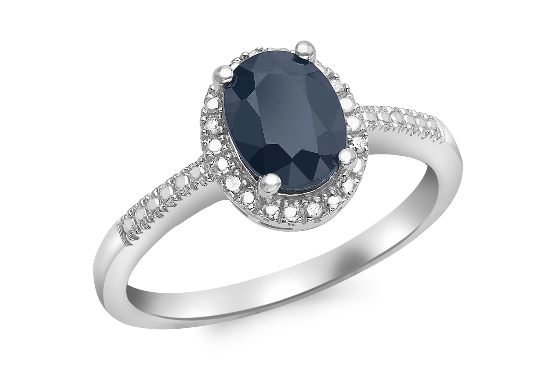 9ct White Gold 0.03ct Diamond & Sapphire Cluster Ring