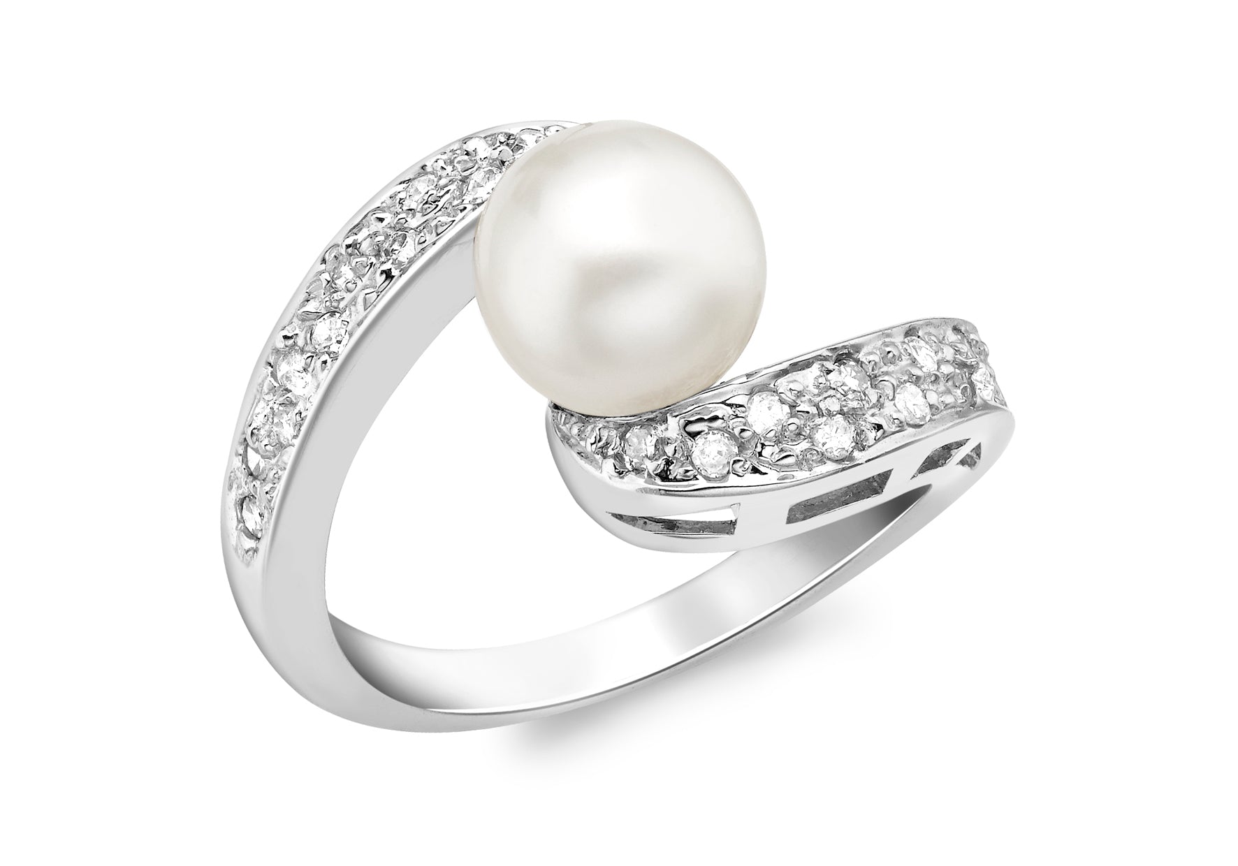 9ct White Gold 0.15ct Diamond Wave Pearl Ring