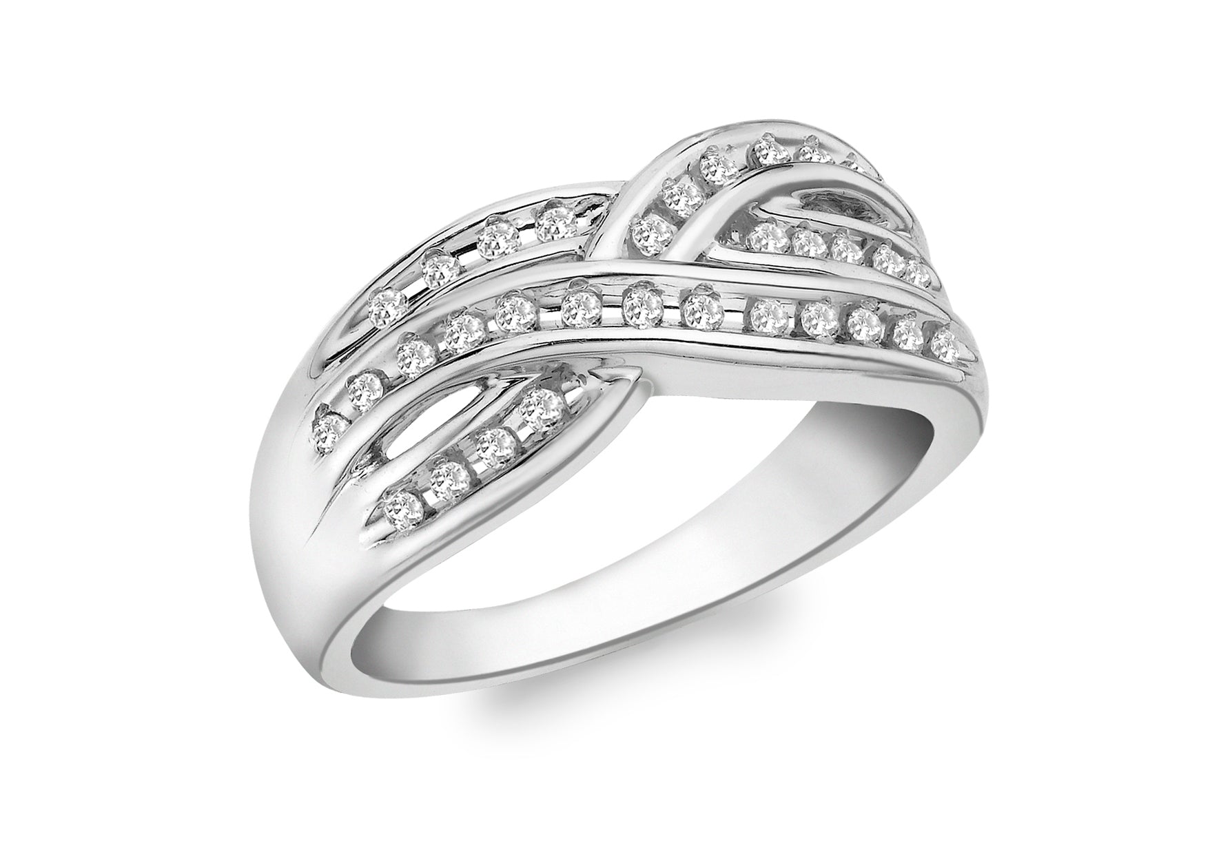 9ct White Gold 0.25ct Triple Crossover Diamond Ring