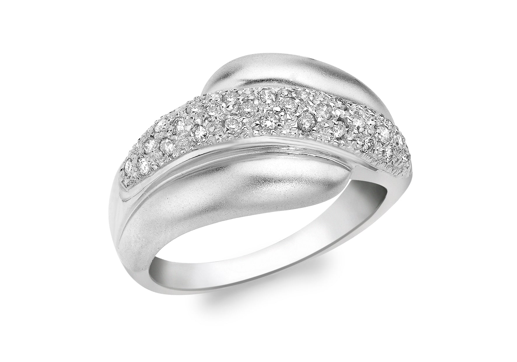 9ct White Gold 0.28ct Pave Set Diamond Satin Ring