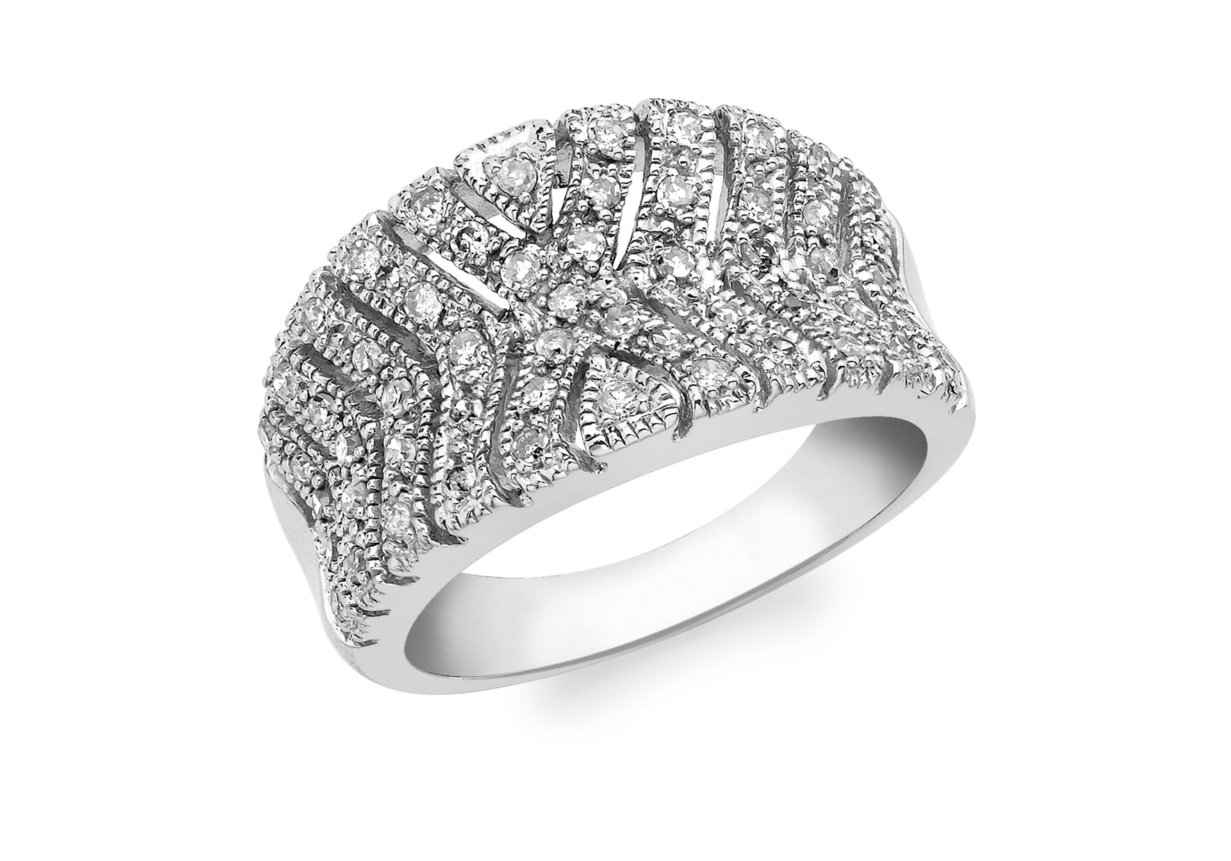9ct White Gold 0.35ct Pave Set Diamond Chevron Ring