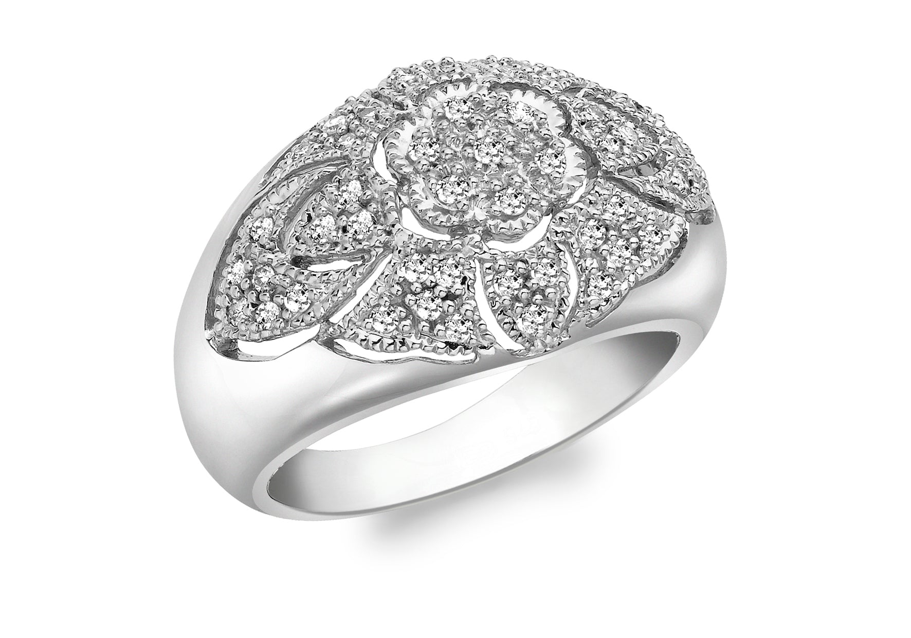 9ct White Gold 0.40ct Pave Set Diamond Filigree Ring