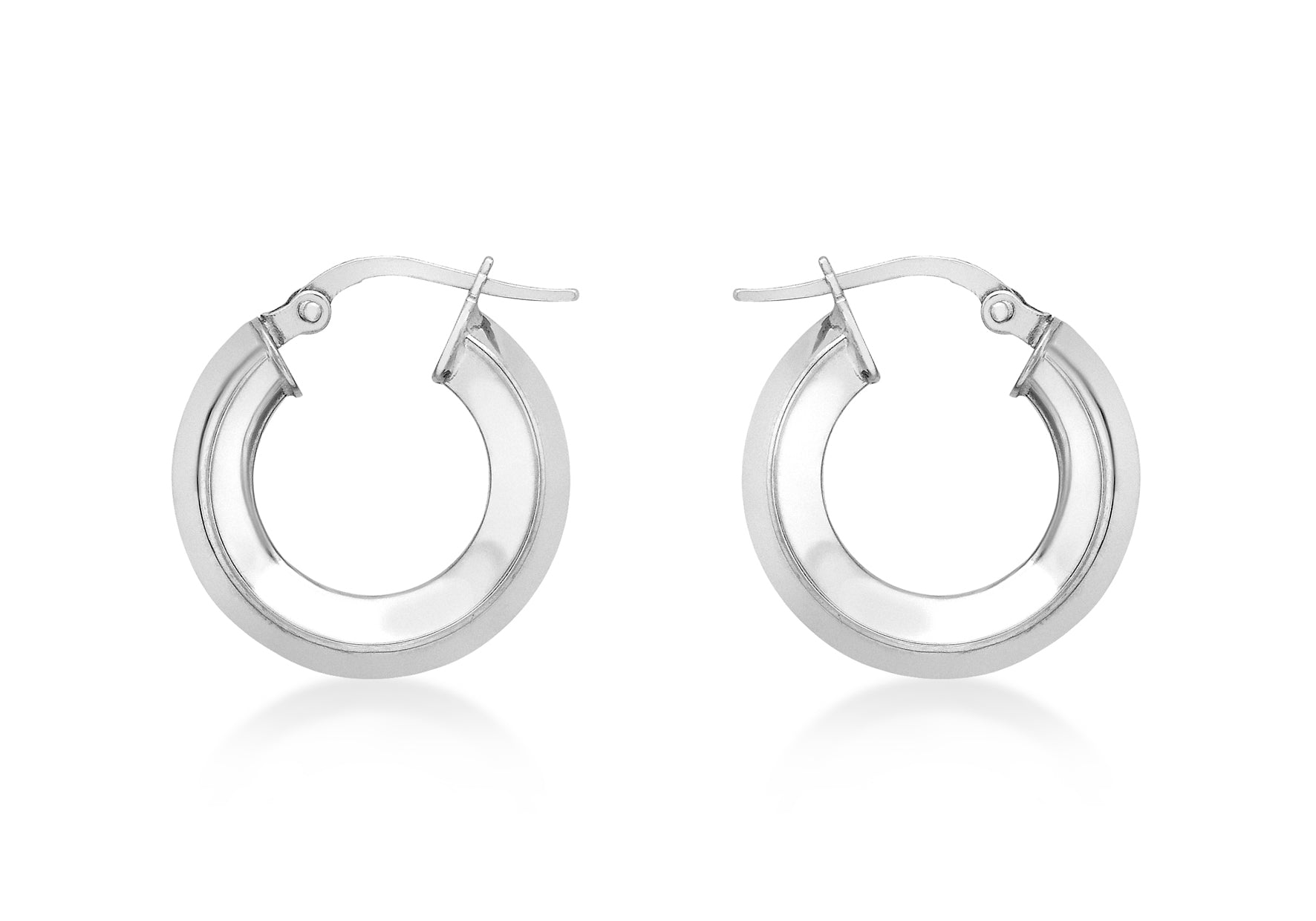 Diameter: 22mm Finish: Polished Fitting: Hinged Post Style: Creole Product Type: Earrings Metal Colour: White Metal: 9ct Gold