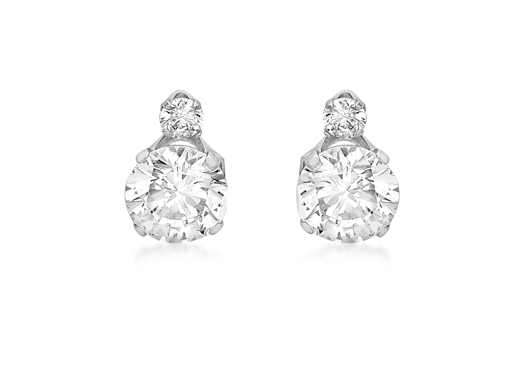 Width: 6mm; Height: 7mm; Fitting: Post; Setting: Claw; Stone Details: 6mm CZ Stone/3mm CZ Stone; Style: Stud Metal Colour: White Metal: 9ct Gold