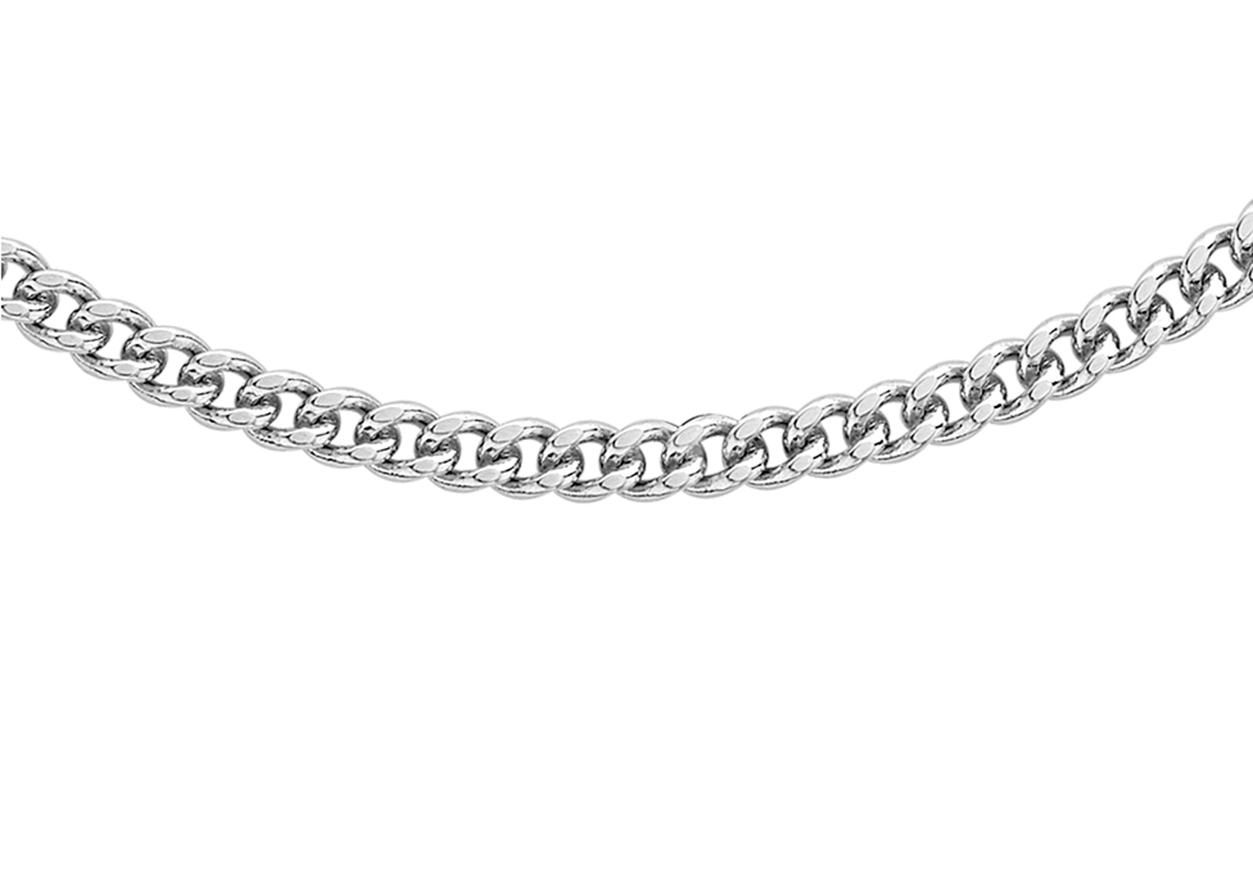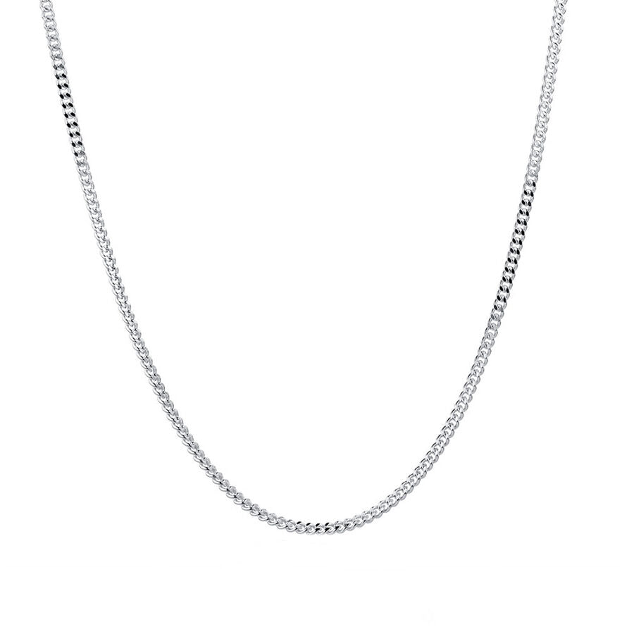 Length: 46cm/18" Width: 2.1mm Clasp: Lobster Style: Curb Product Type: Chains Metal Colour: White Metal: 9ct Gold