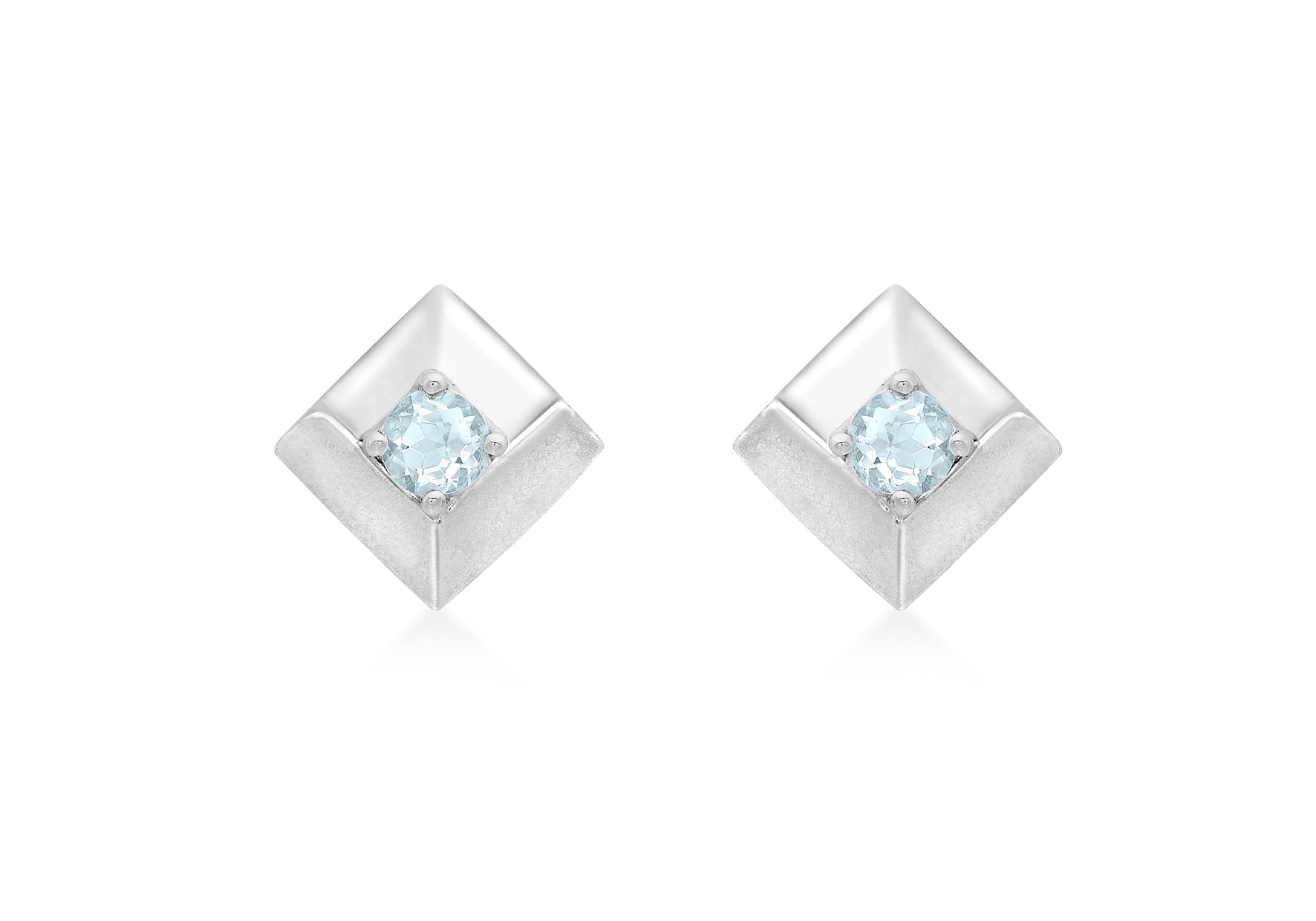 9ct White Gold Blue Topaz Square Stud Earrings Width: 6mm; Height: 6mm; Fitting: Post; Setting: Claw; Stone Details: 3x3mm Blue Topaz Gemstone; Style: Stud Metal Colour: White Metal: 9ct Gold
