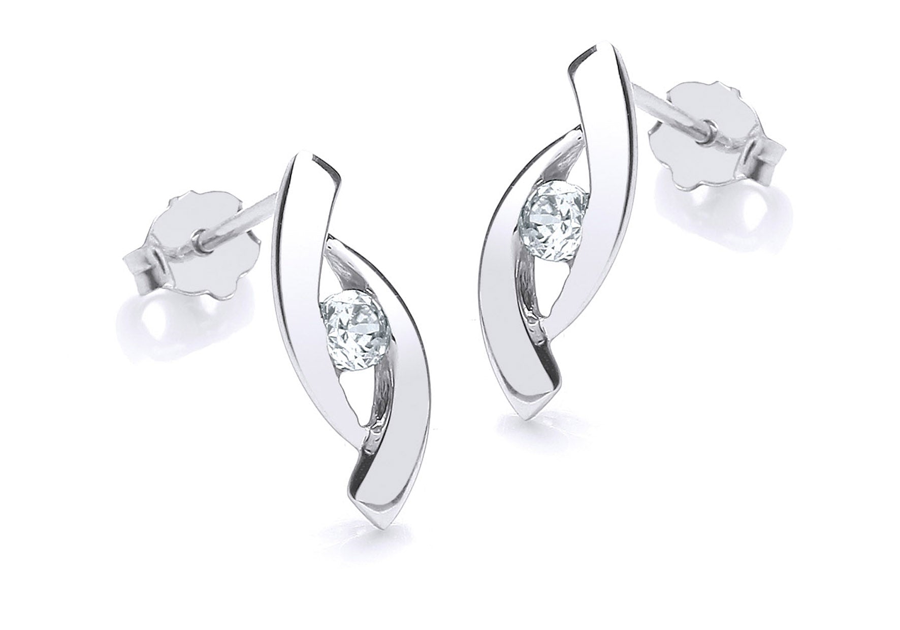 Width: 4mm Height: 12mm Fitting: Post Stone Details: 3mm CZ Stone Style: Stud Product Type: Earrings Metal Colour: White Metal: 9ct Gold
