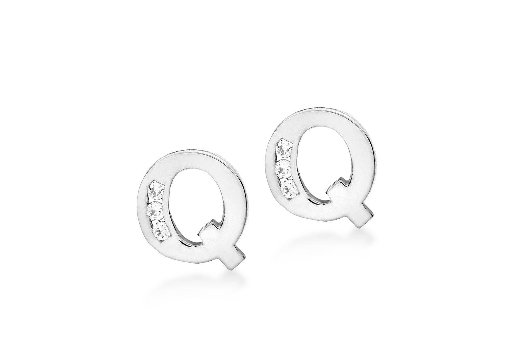 9ct White Gold Zirconia 'Q' Initial Stud Earrings