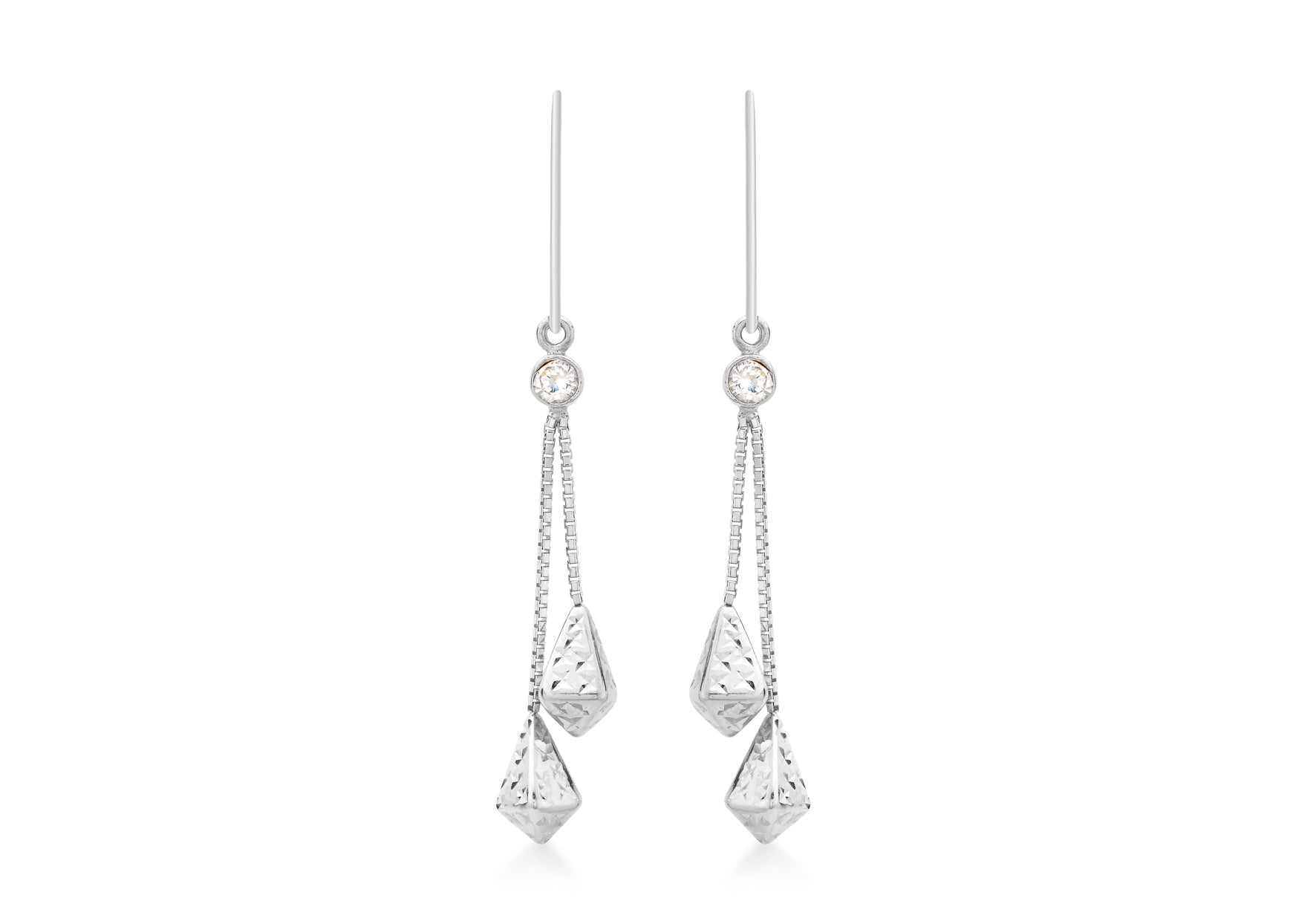 9ct White Gold Zirconia and Diamond Cut Chain Drop Earrings