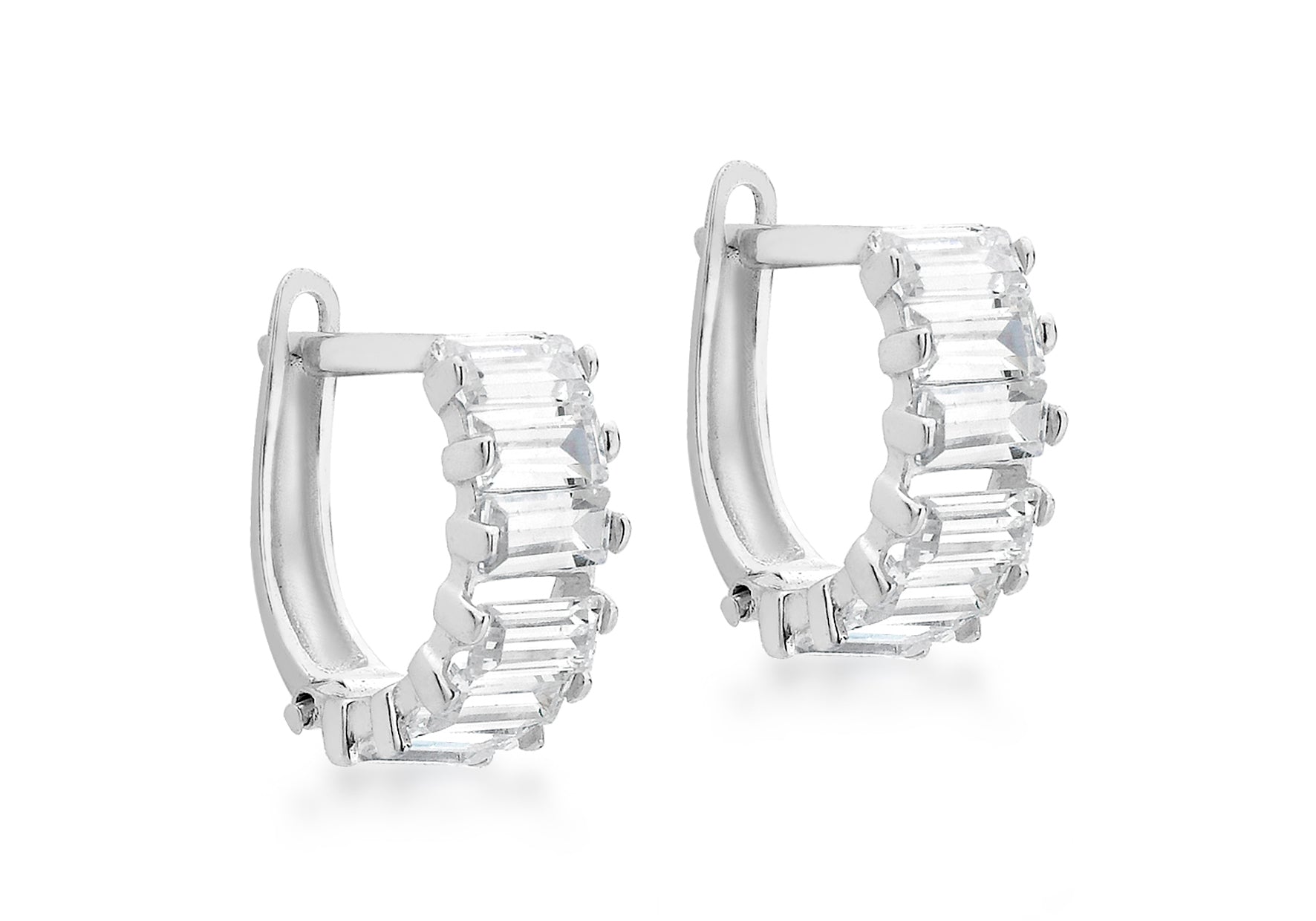 9ct White Gold Zirconia Baguette Huggy Earrings