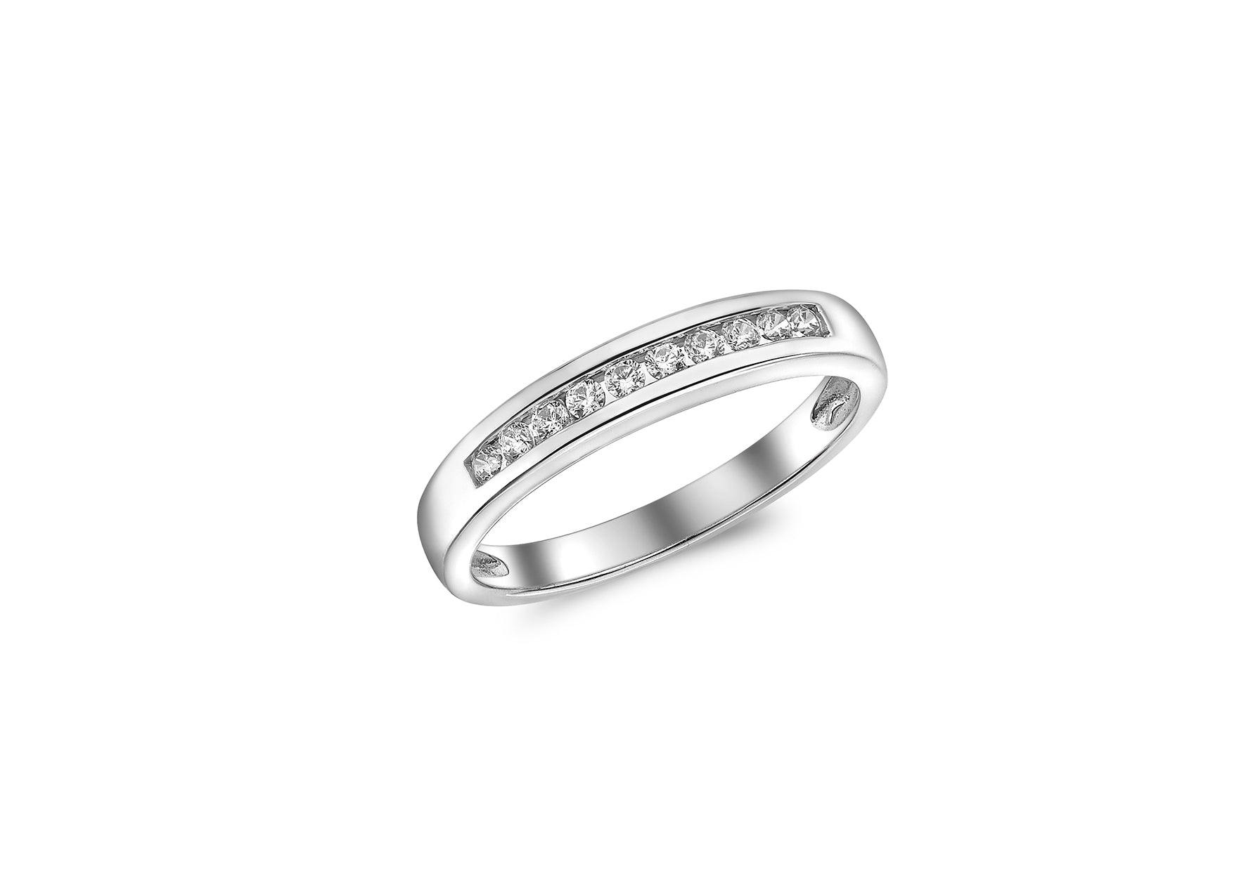 A refined balance of elegance and modern simplicity, this Ring is designed to elevate everyday moments. The polished band features a seamless row of brilliant-cut zirconia stones, each precisely nestled within a smooth channel setting for a sleek, uninterrupted finish. Its cool white gold sheen complements the icy sparkle of the stones, creating a timeless piece that layers effortlessly or stands confidently on its own.