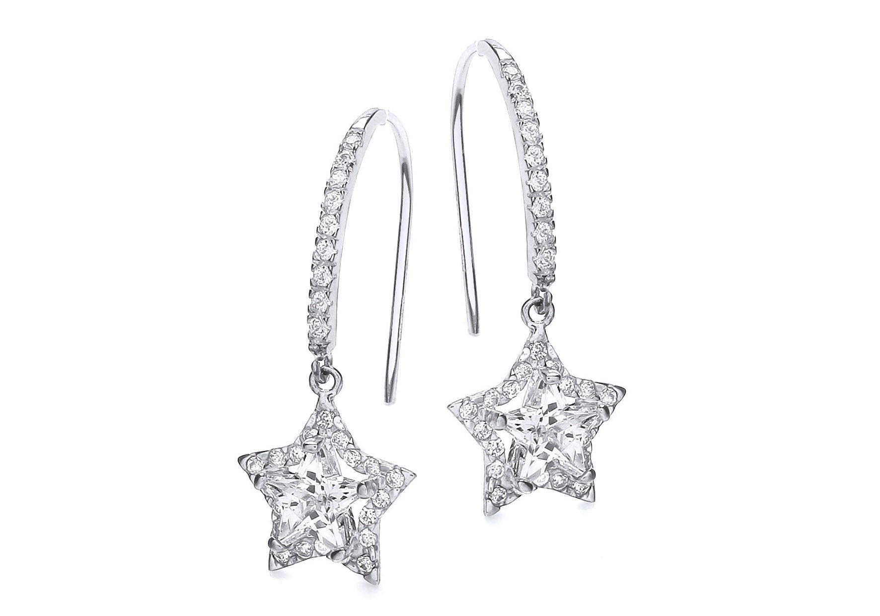 Width: 12mm Height: 28mm Fitting: Hook Setting: Claw Stone Details: 8x8mm CZ Stone Style: Drop Product Type: Earrings Metal Colour: White Metal: 9ct Gold