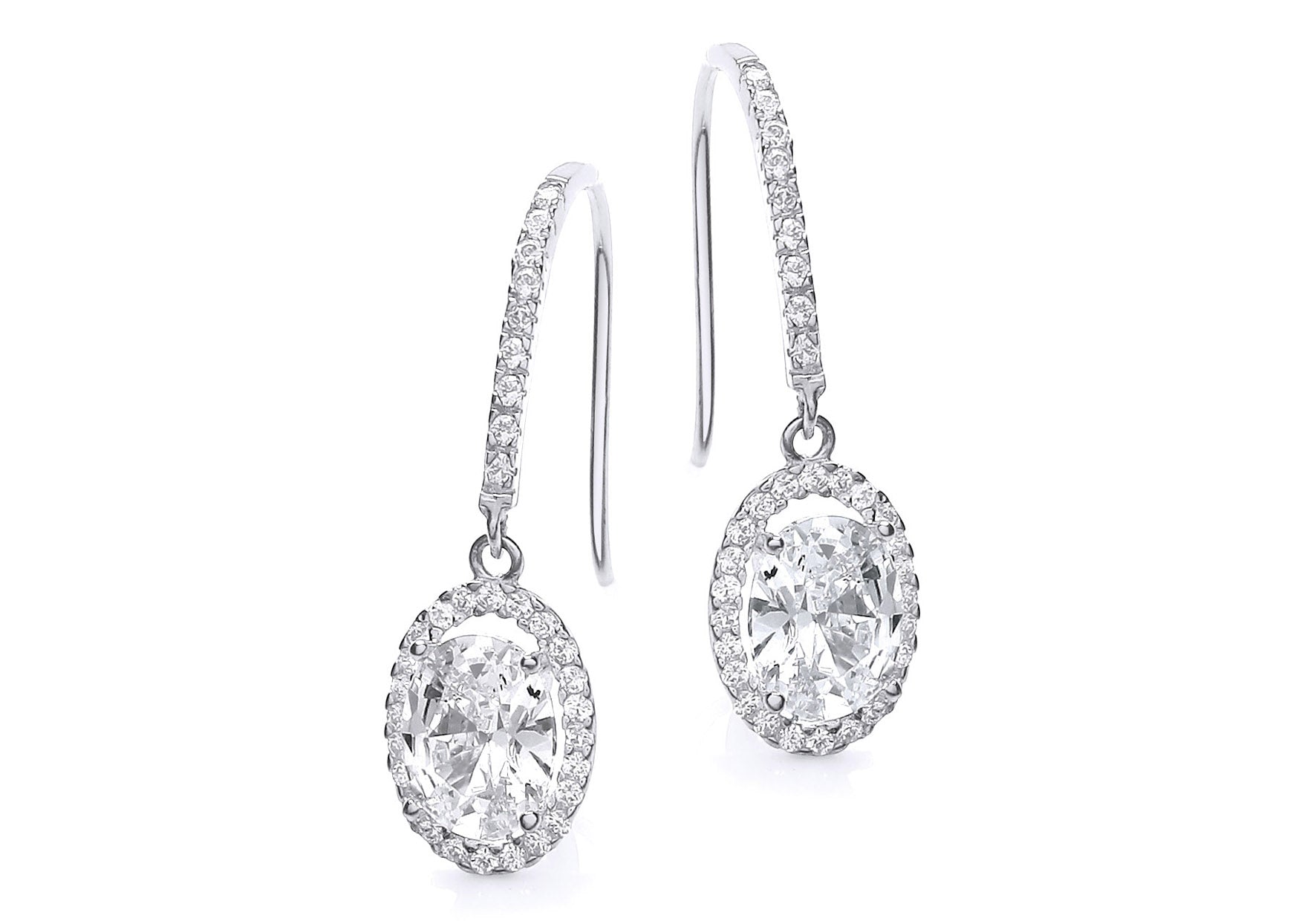 Width: 8mm Height: 27mm Fitting: Hook Setting: Claw Stone Details: 8mm x 6mm CZ Stone Style: Drop Product Type: Earrings Metal Colour: White Metal: 9ct Gold