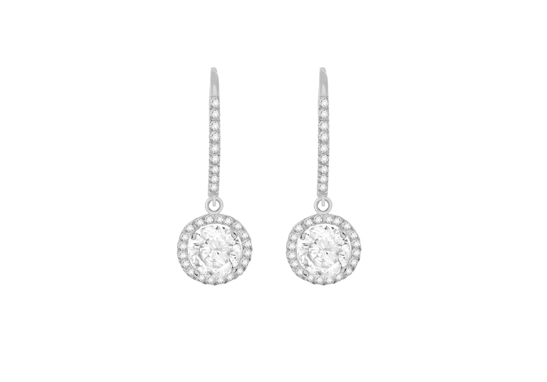 Width: 9.4mm Height: 27mm Fitting: Hook Setting: Claw Stone Details: 6mm CZ Stone Style: Drop Product Type: Earrings Metal Colour: White Metal: 9ct Gold