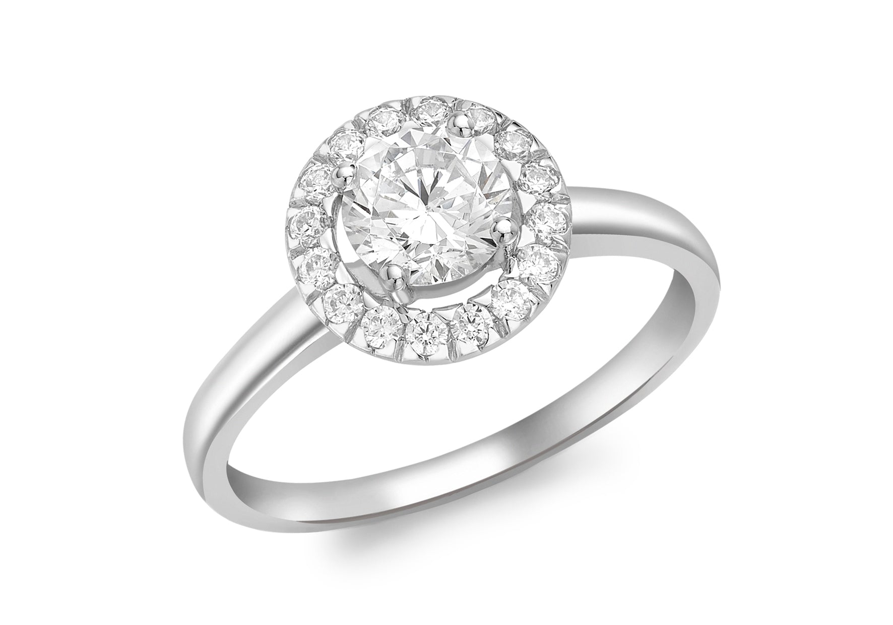 Details: Ring Face 10mm Ring Shank: 1.8mm Finish: Polished Setting: Claw Stone Details: 1 x 6mm Round White CZ, 16 x 1.5mm Round White CZs Style: Stone Set Product Type: Rings Metal Colour: White Metal: 9ct Gold