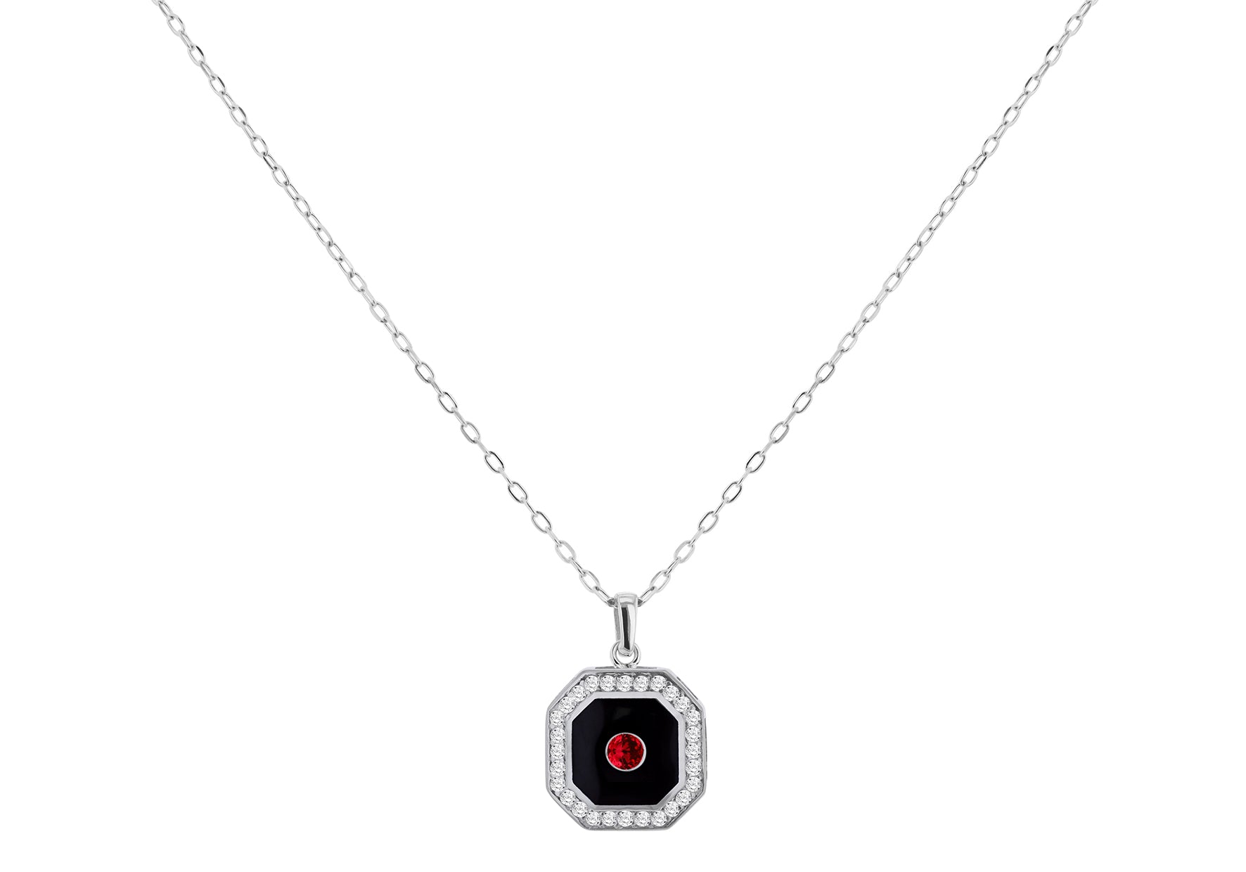 9ct White Gold Ruby and 0.28ct Diamond Black Octagon Necklace
