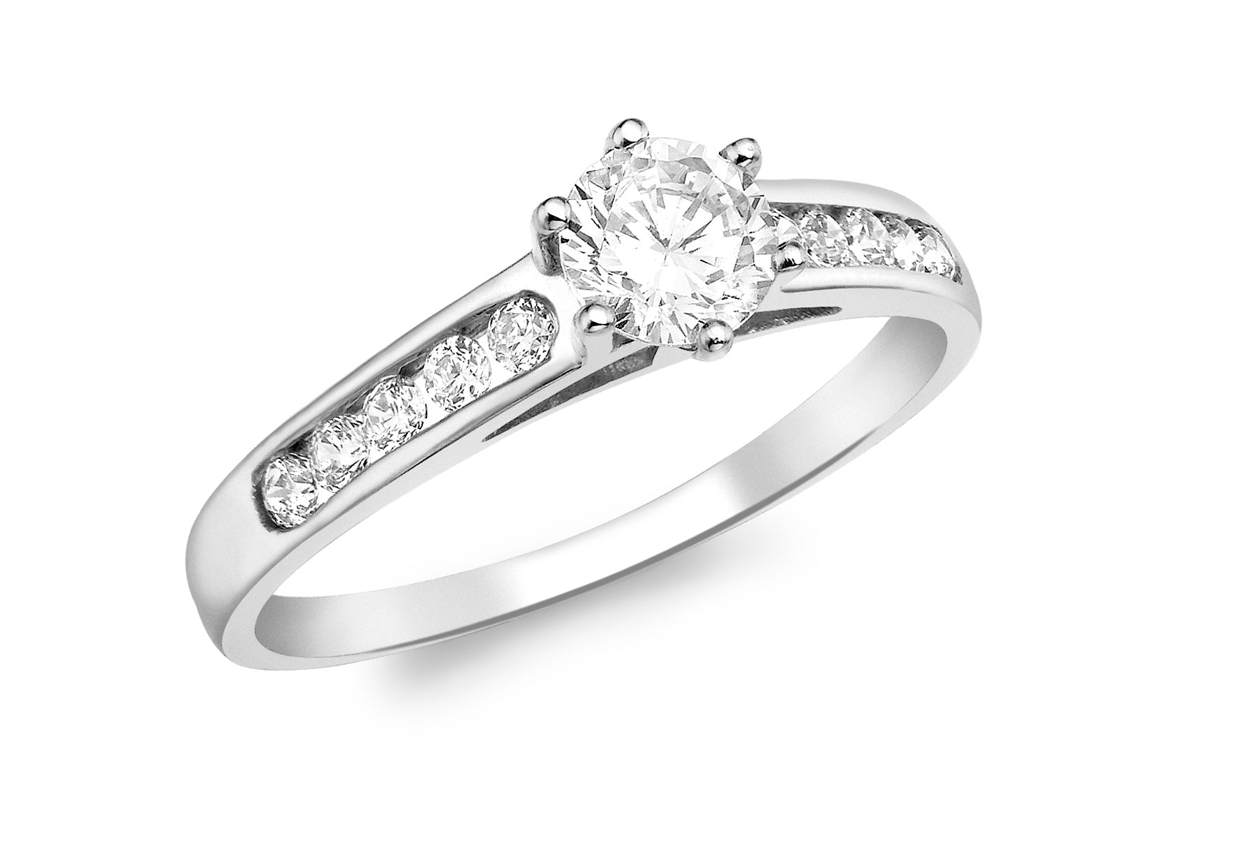 9ct White Gold White Zirconia Solitaire Shoulder Ring