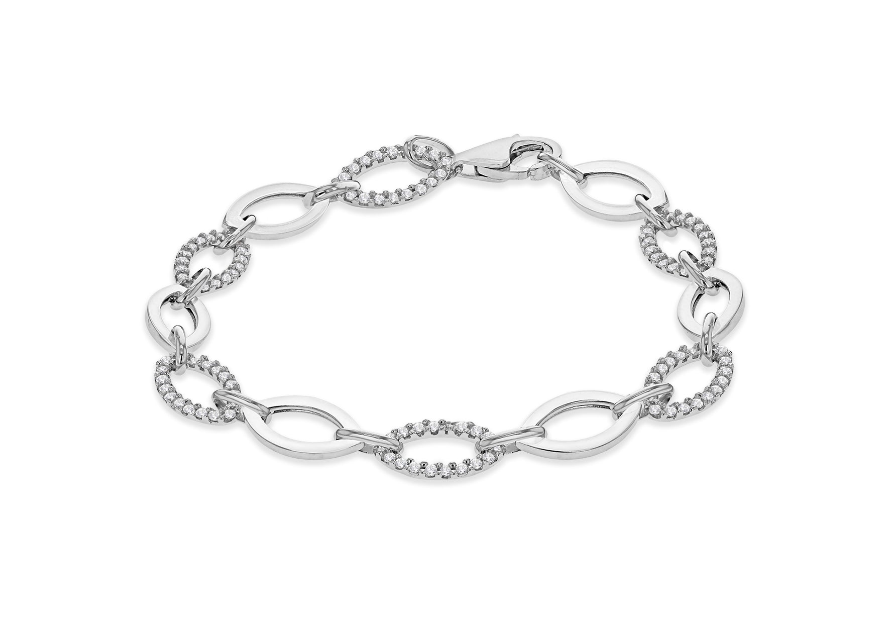 9ct White Gold White Zirconia Set Elliptic Links Bracelet