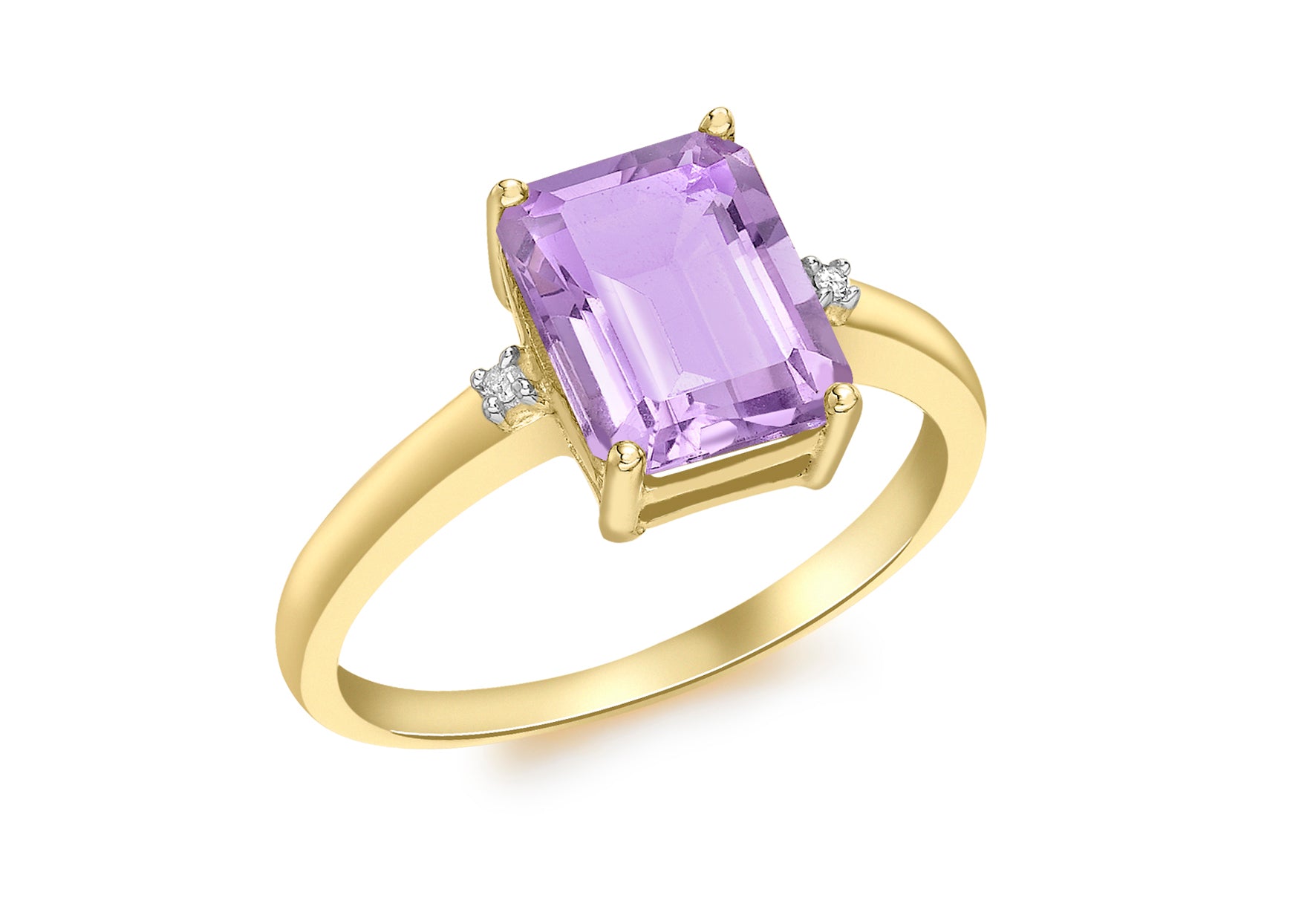 9ct Yellow Gold Amethyst & 0.01ct Diamond Ring