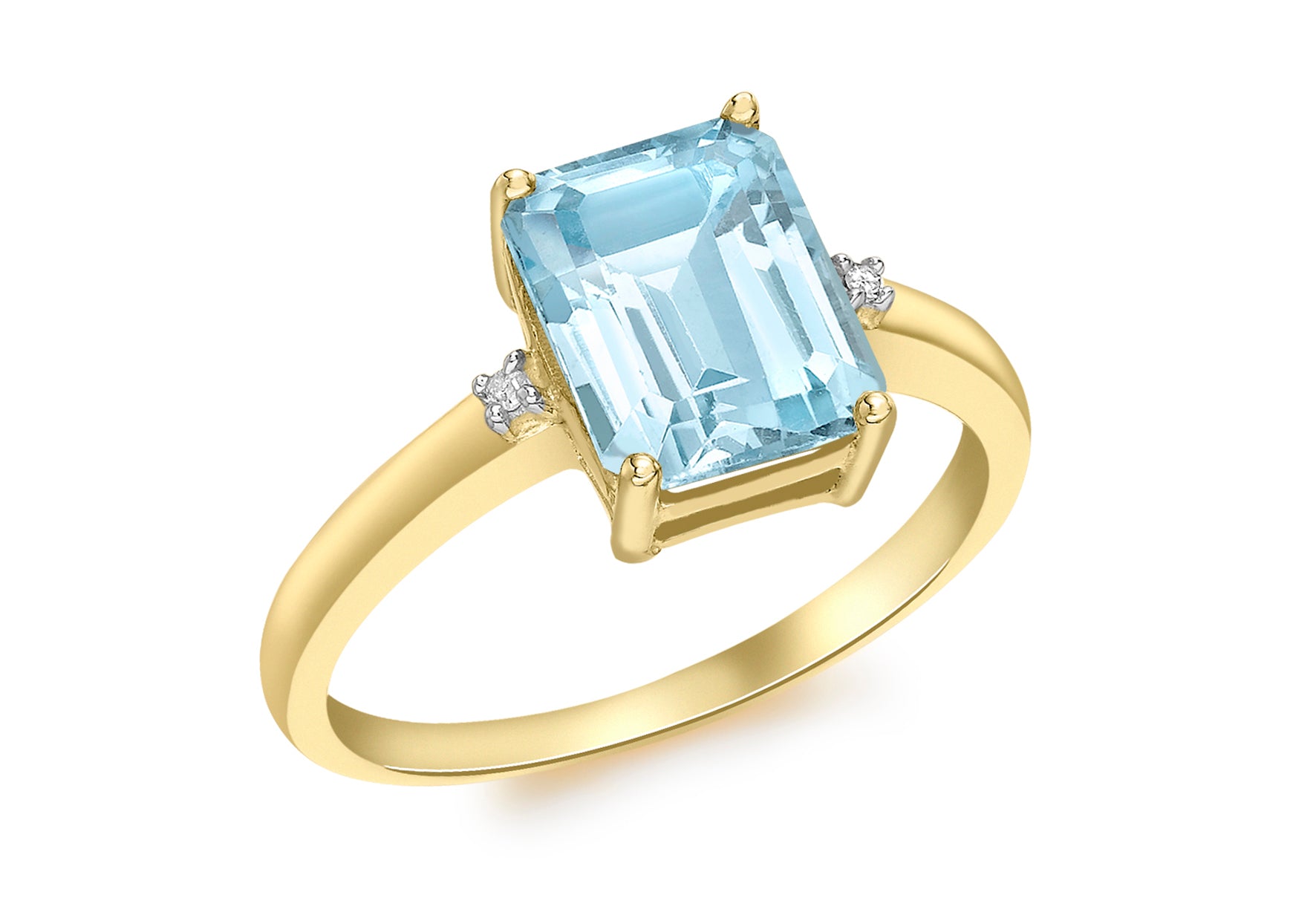 9ct Yellow Gold 0.01ct Diamond and Blue Topaz Ring
