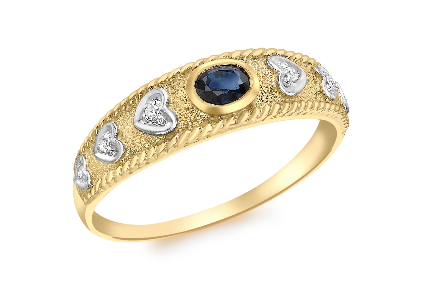 9ct Yellow Gold 0.03ct Diamond and Sapphire Satin Ring