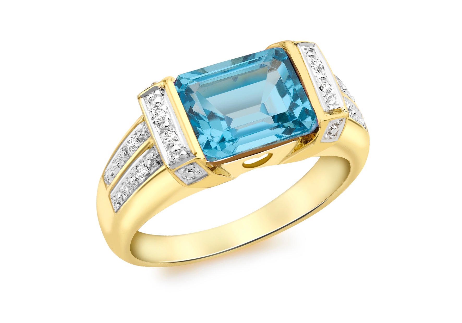 9ct Yellow Gold 0.04ct Diamond & Blue Topaz Ring