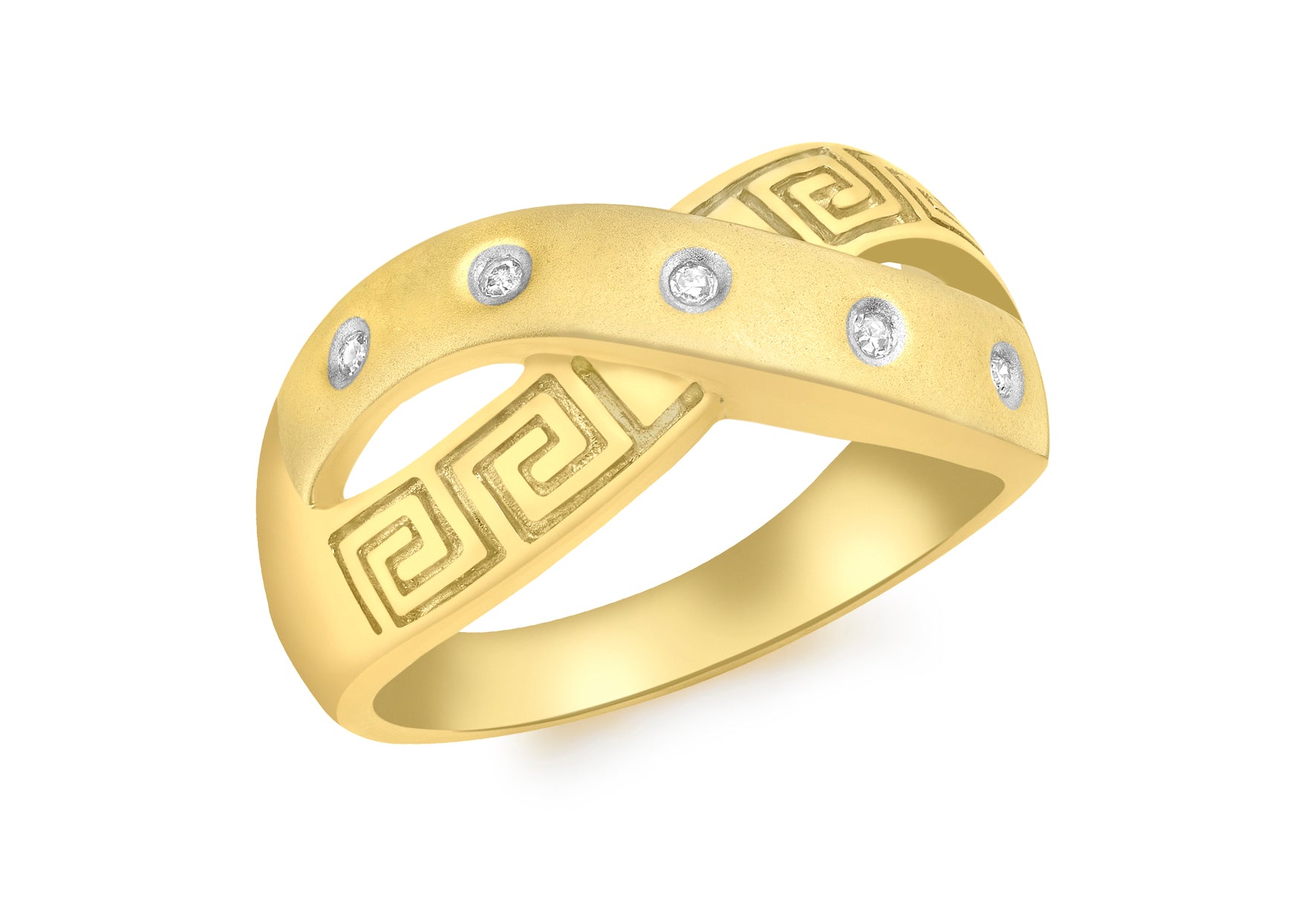 9ct Yellow Gold 0.04ct Diamond Greek Key Crossover Ring