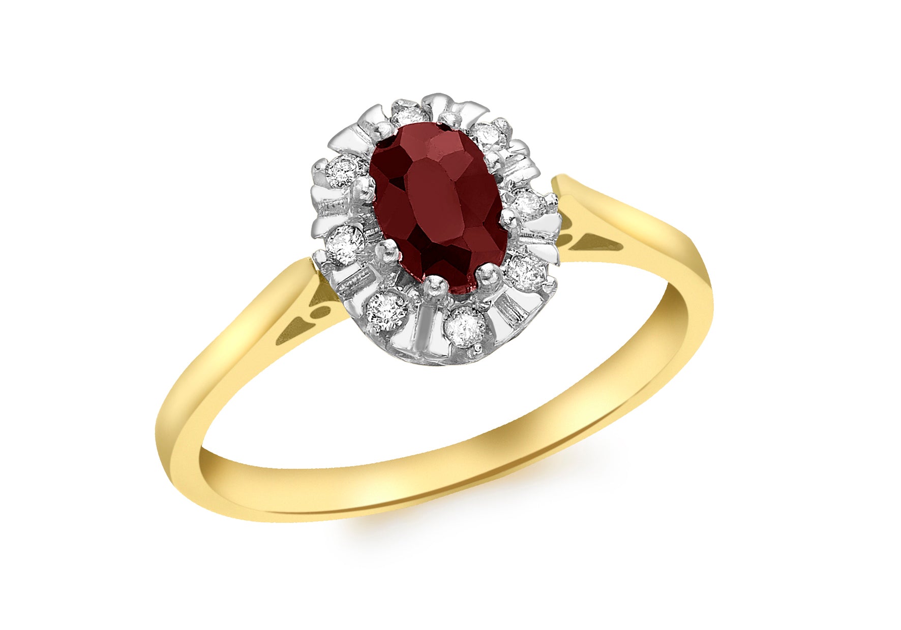 9ct Yellow Gold 0.08ct Diamond & Garnet Cluster Ring
