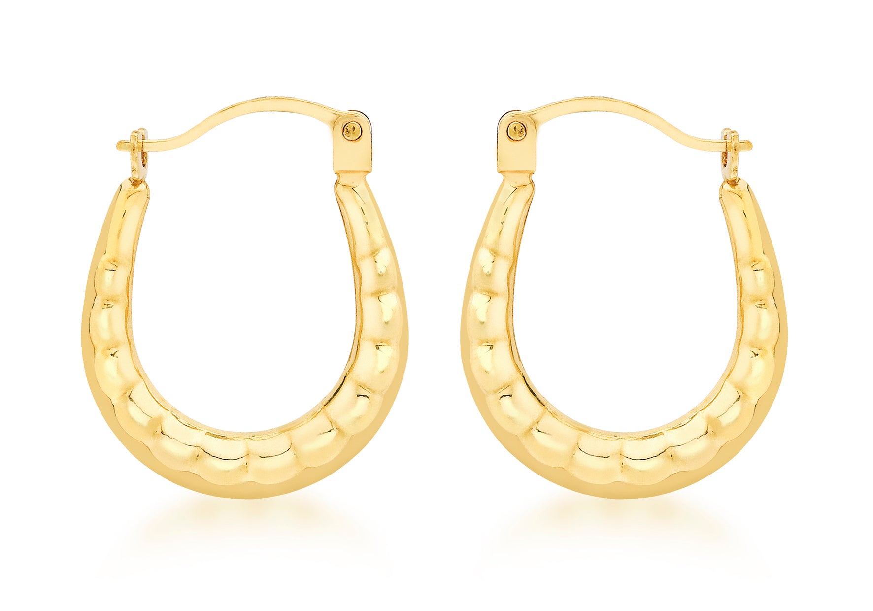 9ct Yellow Gold Patterned Creole Earrings Width: 12mm; Height: 15mm; Fitting: Hinged Post; Style: Creole Metal Colour: Yellow Metal: 9ct Gold