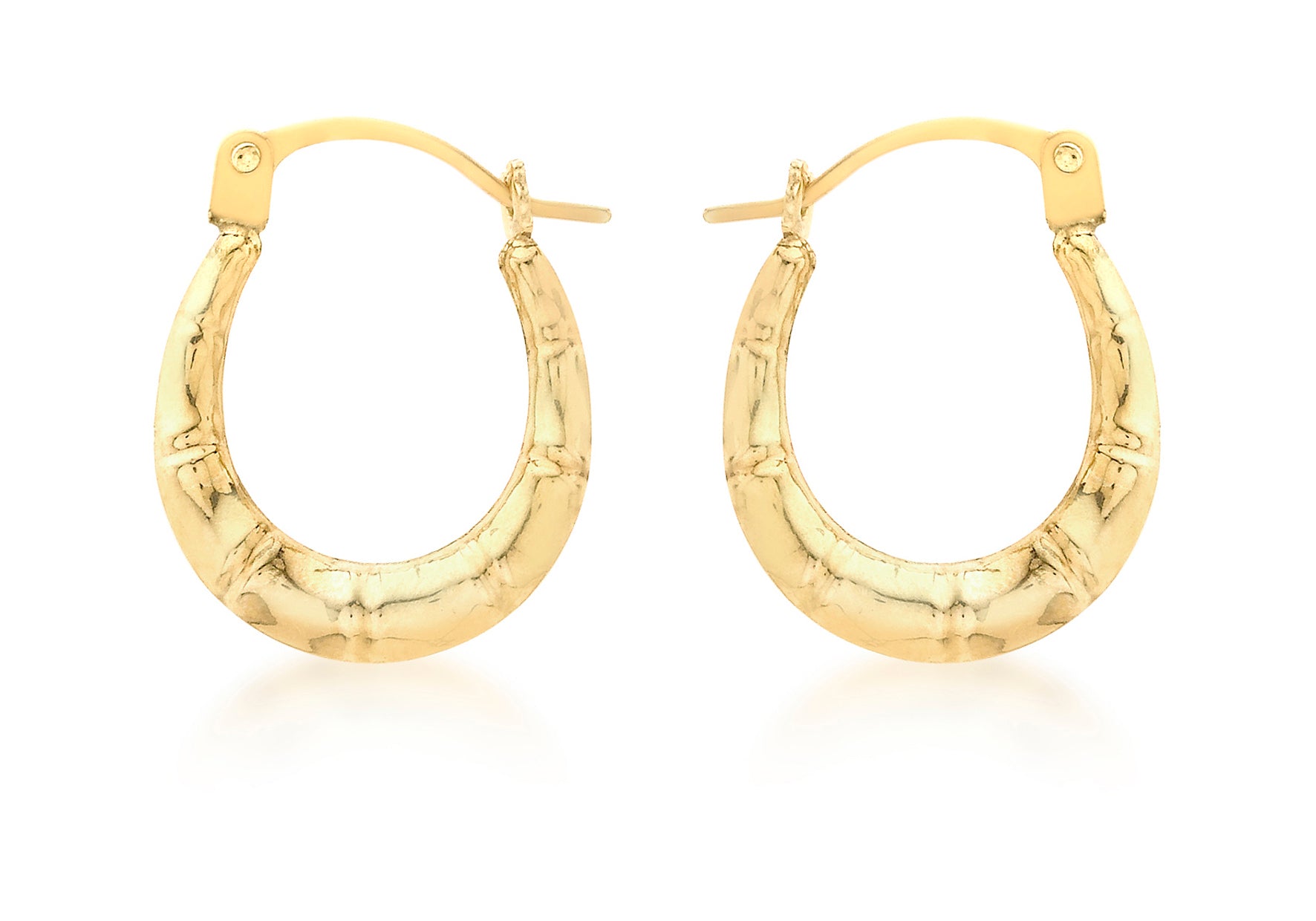 Width: 12mm Height: 16mm Finish: Polished Fitting: Hinged Post Style: Creole Product Type: Earrings Metal Colour: Yellow Metal: 9ct Gold