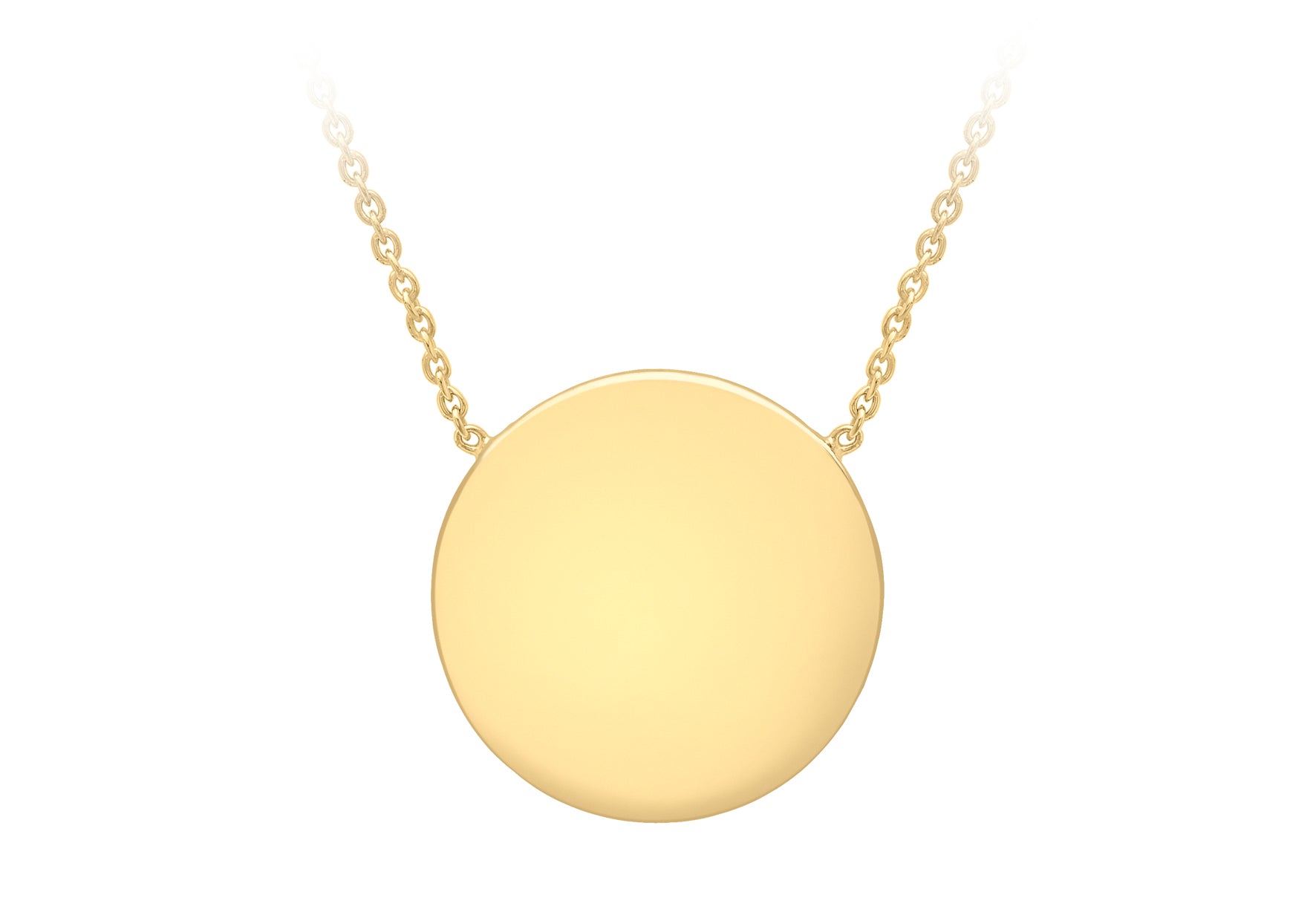 9ct Yellow Gold Disc Pendant Adjustable Necklace Length: 41cm-43cm; Width: 0.8mm; Diameter: 15mm; Finish: Polished; Clasp: Lobster; Style: Motif Metal Colour: Yellow Metal: 9ct Gold
