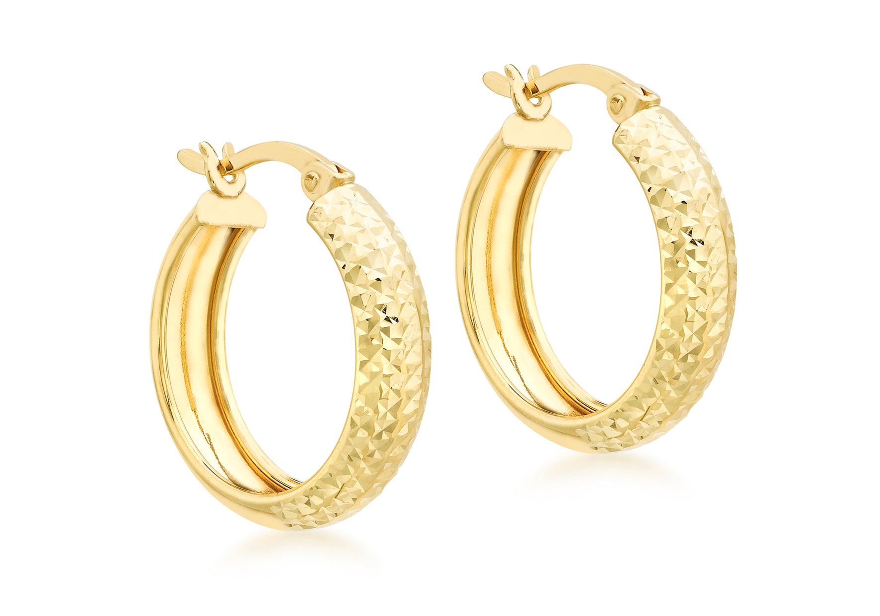 9ct Yellow Gold 19mm Diamond Cut Creole Earrings