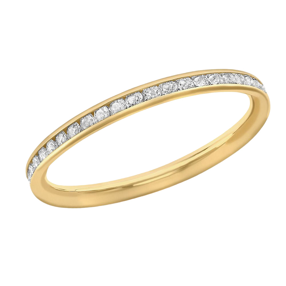 This eternity ring is crafted in fine yellow gold and set with a continuous line of white zirconia, each stone arranged to form an unbroken circle of light. The polished gold band enhances the sparkle of the stones, creating a warm contrast that gives the design depth and balance.