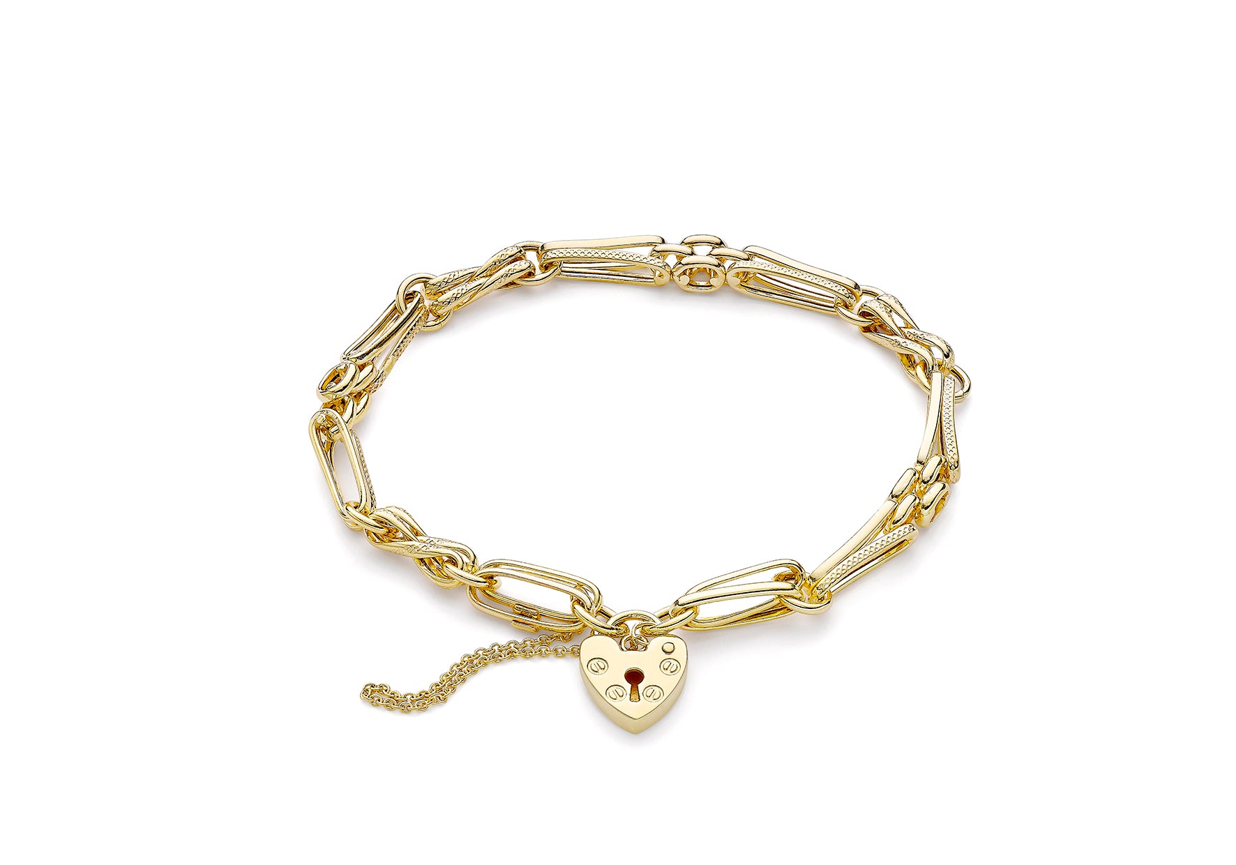 9ct Yellow Gold Bar Link & Panther Chain Padlock Bracelet