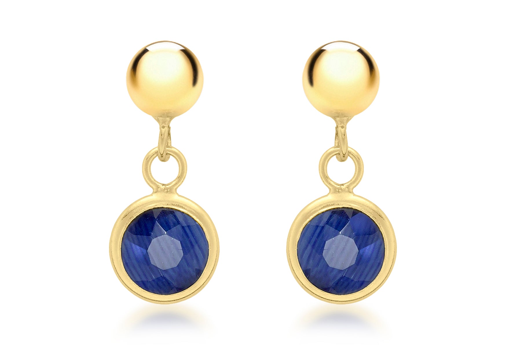 9ct Yellow Gold Blue Crystal Ball Drop Earrings