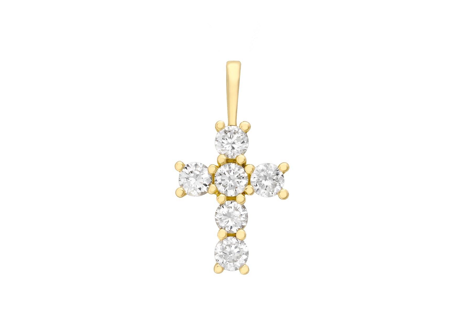 Pendant Height: Including Bail 17mm; Pendant Width: 9mm; Setting: Claw; Stone Details: 3mm CZ Stones; Style: Religious Metal Colour: Yellow Metal: 9ct Gold