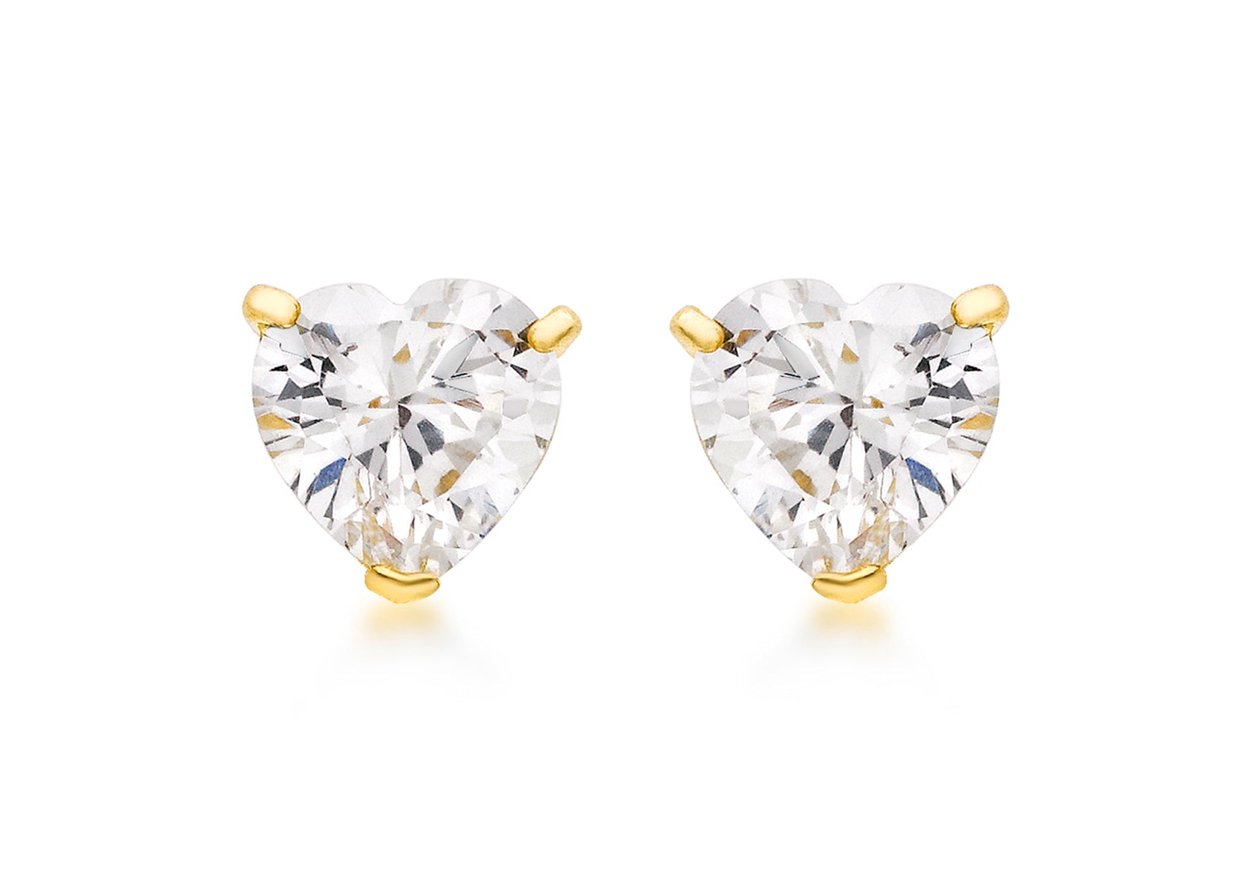 9ct Yellow Gold Zirconia Heart Stud Earrings