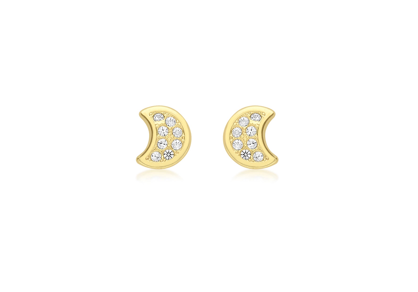 9ct Yellow Gold Zirconia Moon Stud Earrings
