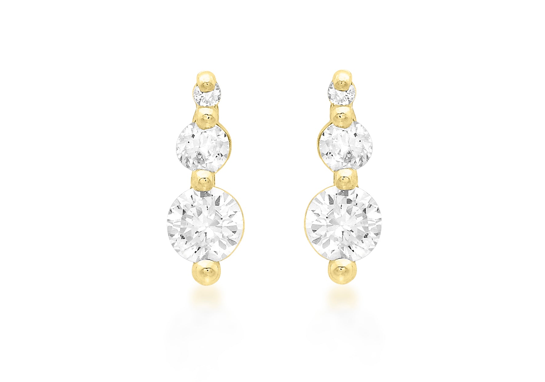 9ct Yellow Gold Zirconia Trilogy Earrings
