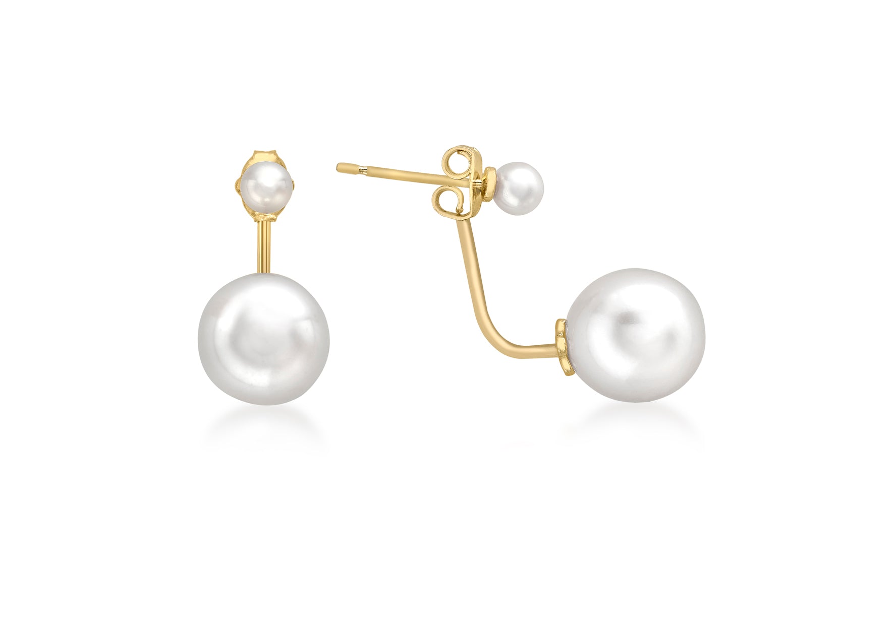 Width: 8mm Height: 15mm Finish: Polished Fitting: Post Stone Details: 2 x 3mm, 2 x 8mm Pearls Style: Jacket Product Type: Earrings Metal Colour: Yellow Metal: 9ct Gold