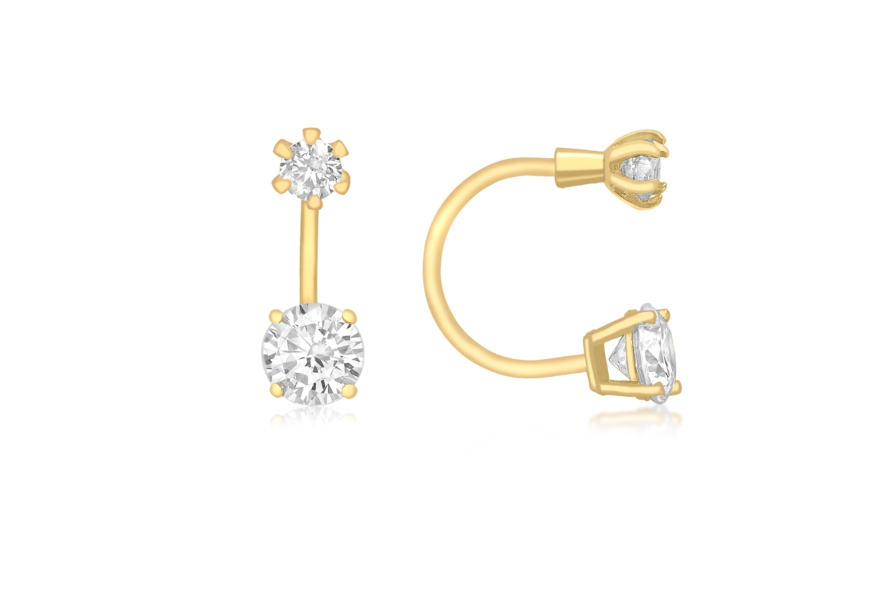 9ct Yellow Gold Double Round Zirconia Jack Earrings