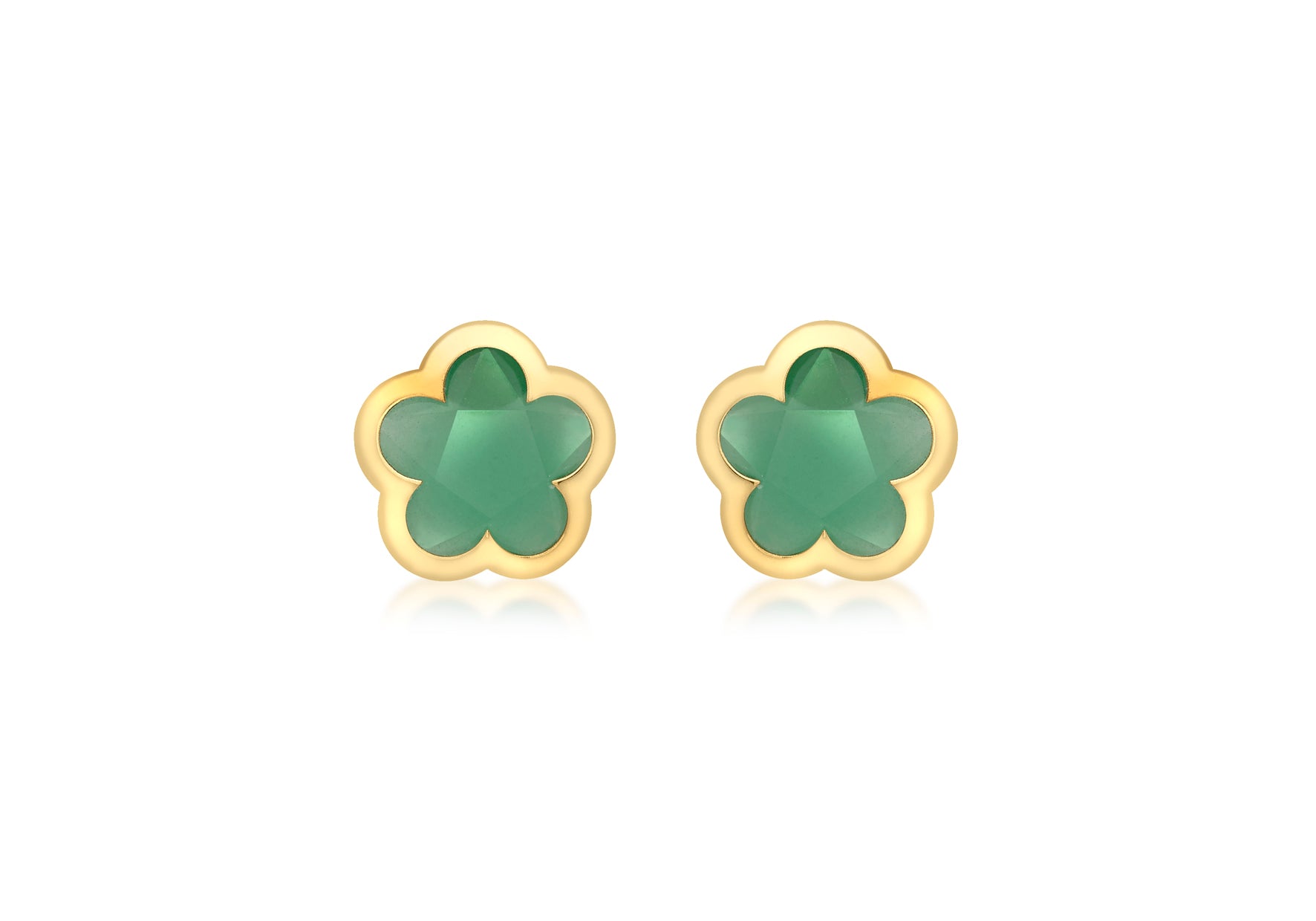 9ct Yellow Gold Green Crystal Flower Stud Earrings