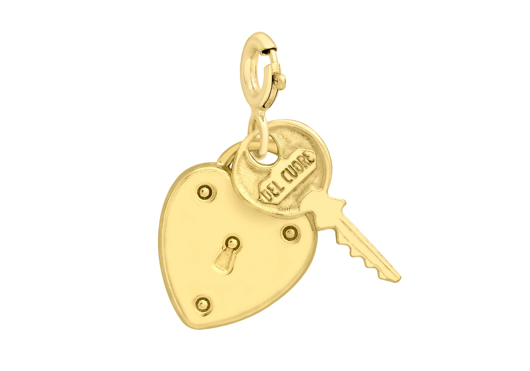 9ct Yellow Gold Heart Lock & Key Spring-Ring Charm Pendant Height: Including Bail 19mm; Pendant Width: 11mm; Finish: Polished; Clasp: Spring Ring; Style: Plain Metal Colour: Yellow Metal: 9ct Gold